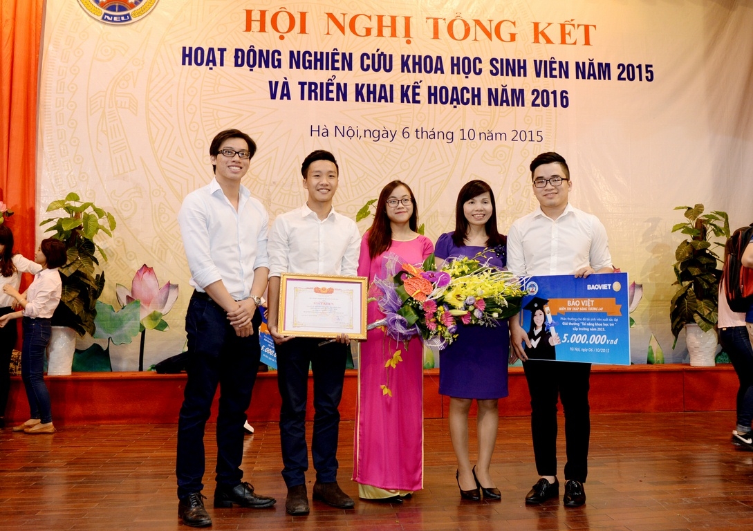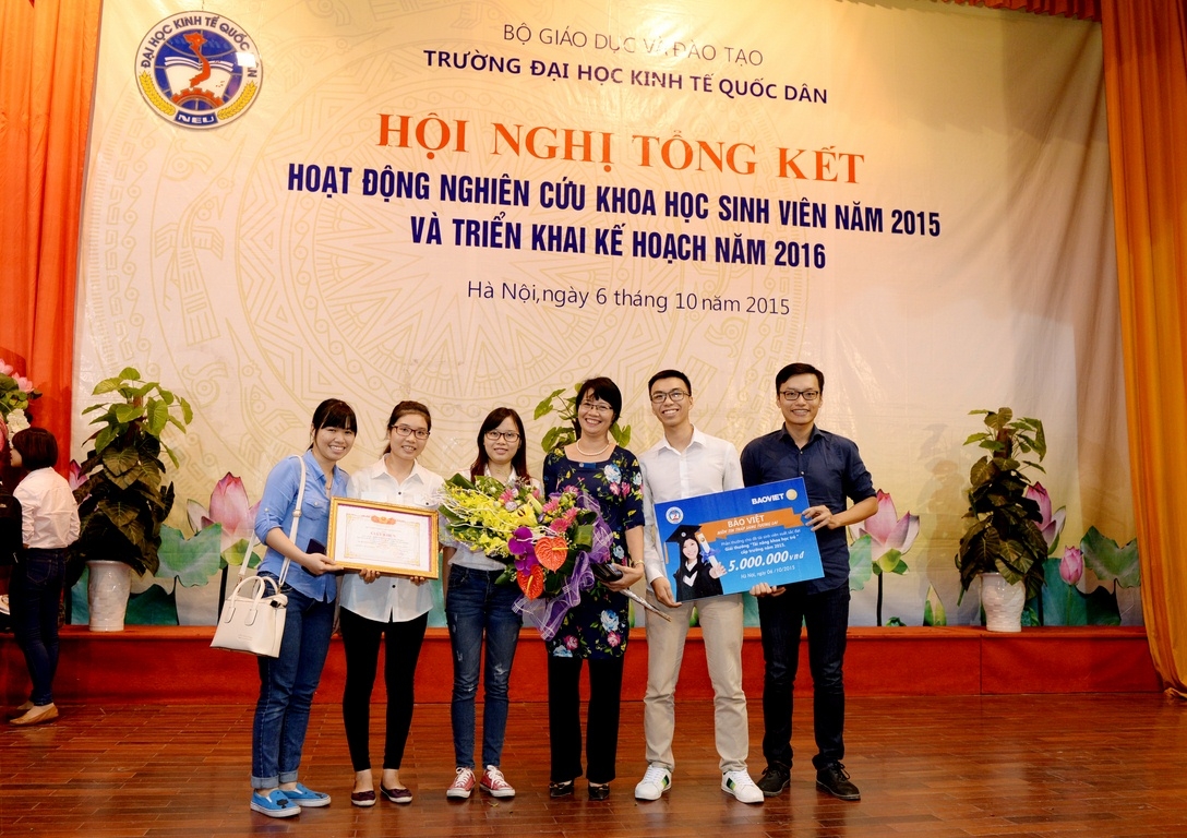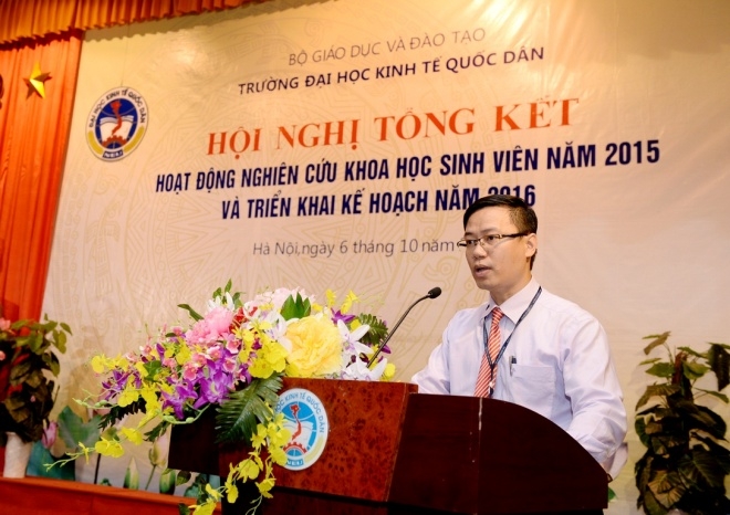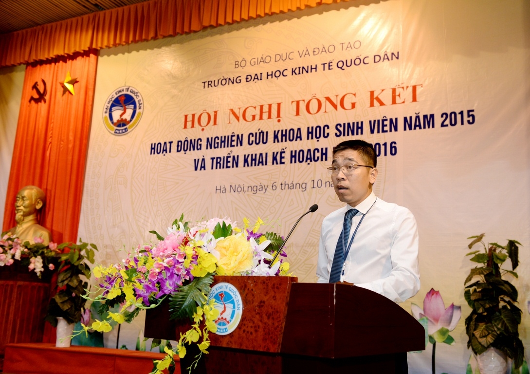 Chiều ngày 06 tháng 10 năm 2015, tại Hội trường A, trường Đại học Kinh tế Quốc dân đã tổ chức Hội nghị tổng kết Hoạt động nghiên cứu Khoa học sinh viên năm 2015 và triển khai kế hoạch năm 2016. Đến dự Hội nghị, về phía các vị đại biểu ngoài trường có: TS.Vũ Thanh Bình – Phó Vụ trưởng Vụ Khoa học Công nghệ và Môi trường, Bộ Giáo dục & Đào tạo, TS. Phí Trọng Thảo – Giám đốc TT Đào tạo Bảo Việt – đại diện nhà tài trợ. Về phía Trường Đại học Kinh tế Quốc dân có: GS.TS.Trần Thọ Đạt – Bí thư Đảng ủy, Hiệu trưởng, PGS.TS Phạm Hồng Chương – Phó Hiệu trưởng, Phó Bí thư TT Đảng ủy; PGS.TS.Trần Thị Vân Hoa – Phó Hiệu trưởng cùng đại diện lãnh đạo các phòng, ban, viện, các khoa, bộ môn, các thầy cô giáo, các em sinh.