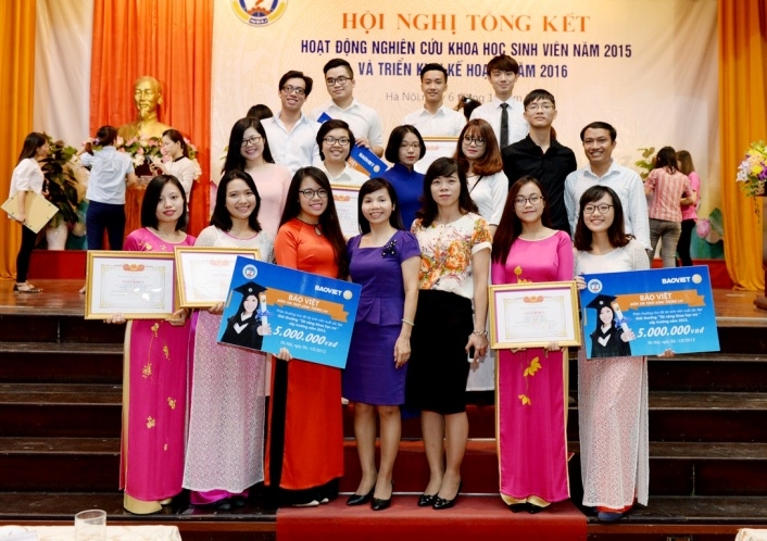 Thay mặt Ban Giám hiệu nhà trường, PGS.TS.Trần Thị Vân Hoa – Phó Hiệu trưởng nhiệt liệt chúc mừng các em sinh viên, các thầy cô giáo hướng dẫn sinh viên nghiên cứu khoa học đạt giải thưởng và khẳng định rằng, với mục tiêu phát triển ĐHKTQD thành trường Đại học định hướng nghiên cứu vào năm 2020, lãnh đạo nhà trường cam kết đầu tư cho hoạt động nghiên cứu khoa học và sử dụng mọi hình thức khuyến khích các hoạt động NCKH, khuyến khích sinh viên tham gia nghiên cứu khoa học ở các cấp, đặc biệt là tham gia giải thưởng “tài năng khoa học trẻ sinh viên”. Nhân dịp này, Phó Hiệu trưởng Trần Thị Vân Hoa gửi lời cảm ơn tới lãnh đạo Bộ Giáo dục và đào tạo, lãnh đạo tập đoàn Bảo Việt – đơn vị tài trợ, lãnh đạo các phòng, ban, khoa, bộ môn… đã ủng hộ, tạo điều kiện, tới các thầy cô giáo đã nhiệt tâm hướng dẫn cho các em sinh viên, đặc biệt là sự nhiệt tình tham gia phong trào nghiên cứu khoa học của các em sinh viên và hy vọng rằng năm 2016, phong trào nghiên cứu khoa học của sinh viên nhà trường sẽ được nâng cao hơn nữa, sẽ thu được những thành tích xuất sắc hơn.