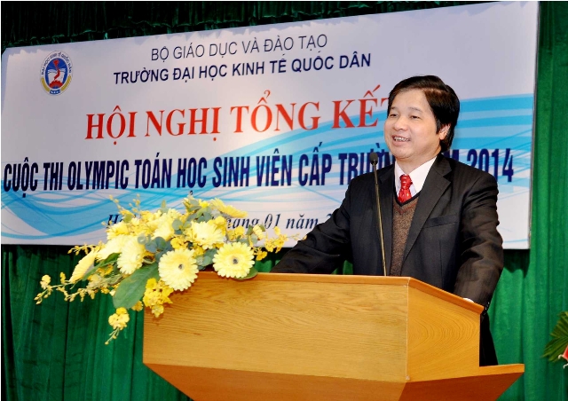 Để tổng kết đánh giá công tác tổ chức và nhằm động viên các sinh viên đạt thành tích xuất sắc trong cuộc thi Olympic Toán học cấp trường năm 2014, chiều ngày 22/01/2014, tại phòng họp G2-Nhà 10, Trường Đại học KTQD đã long trọng tổ chức Hội nghị tổng kết và trao giải thưởng cuộc thi Olympic toán học cấp trường năm 2014. GS.TS. Phạm Quang Trung – Phó Hiệu trưởng – Trưởng ban chỉ đạo cuộc thi phát biểu tại hội nghị