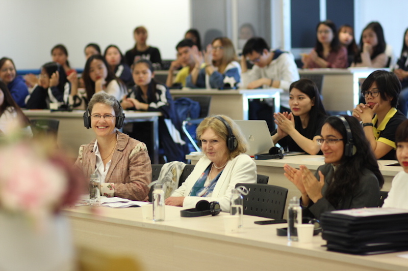 Bà Mary Lawlor – thành viên ban cố vấn Trường Kinh doanh, Đại học Trinity College Dublin, GS thỉnh giảng tại Trung tâm Sáng tạo Xã hội, Đại học Trinity College Dublin trao đổi tại sự kiện
