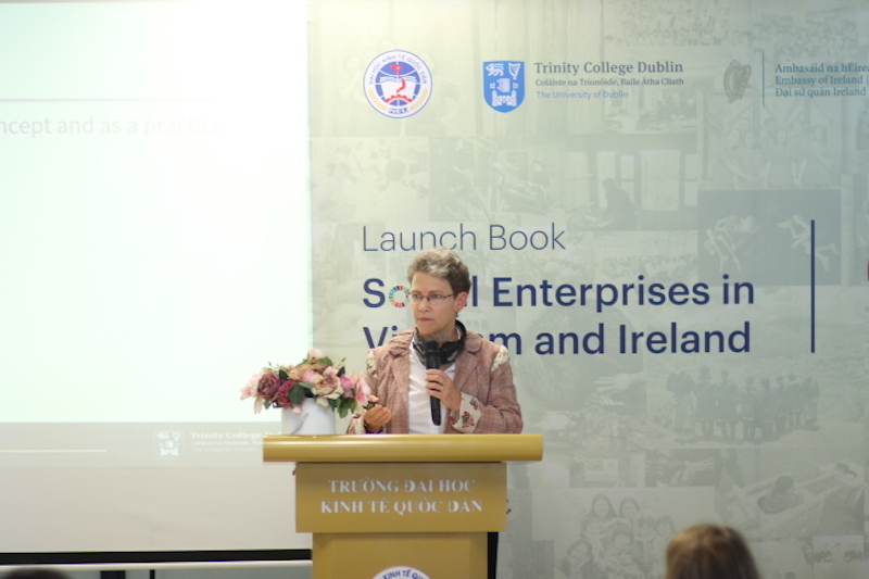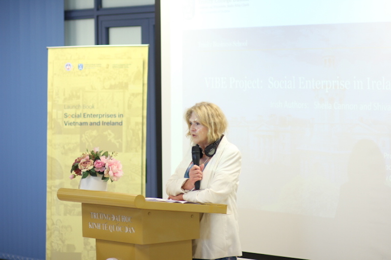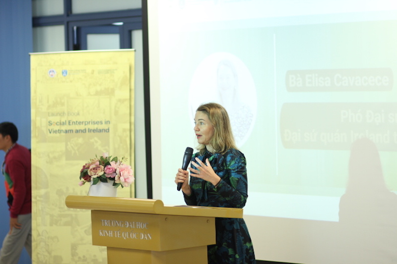 Trong bài phát biểu khai mạc, bà Elisa Cavacece – Phó Đại sứ, Đại sứ quán Ireland tại Việt Nam nhấn mạnh sự quan trọng của doanh nghiệp xã hội và hy vọng có thêm nhiều cơ hội hợp tác giữa hai nước trong lĩnh vực này nhằm thúc đẩy sự phát triển của doanh nghiệp xã hội, tạo ra nhiều hơn các tác động tích cực cho cộng đồng. Đại sứ quán Ireland vui mừng vì đã tạo điều kiện thúc đẩy mối quan hệ đối tác giữa hai trường, giữa hai nhóm nghiên cứu được xây dựng với các kết quả tuyệt vời thông qua Chương trình VIBE – Trao đổi giáo dục song phương Việt Nam – Ireland.