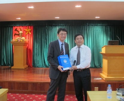 GS. TS. Trần Thọ Đạt, Phó Hiệu trưởng, trao quà lưu niệm cho TS.Donghyun Park