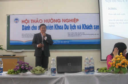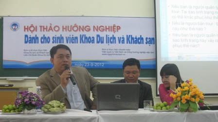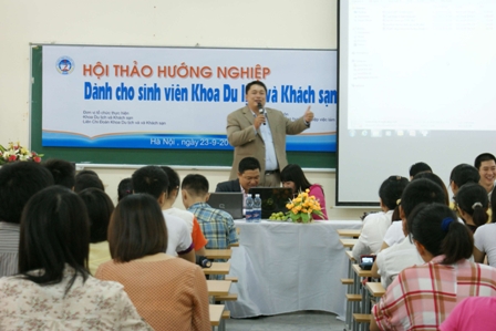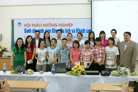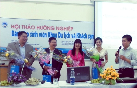 Sáng ngày 23/09/2012 tại phòng 104 giảng đường D – trường đại học Kinh Tế Quốc Dân đã diễn ra "Hộithảo hướng nghiệp dành cho sinh viên khoa Du lịch và Khách sạn" – Trường đại học Kinh Tế Quốc Dân với mục đích giúp các sinh viên trả lời được câu hỏi “Làm thế nào để vượt qua môi trường làm việc chuyên nghiệp?”. Trước ngưỡng cuộc đời, nhất là trong thời kỳ khủng hoảng kinh tế như hiện nay, các sinh viên không tránh khỏi những nỗi lo lắng về tương lai sau khi tốt nghiệp Đại học với hàng loạt những câu hỏi và thách thức được đặt ra: Phải bắt đầu từ đâu, cần phải rèn luyện thêm kĩ năng gì, nên xin việc ở công ty nào, làm sao để có được một CV đẹp cho nhà tuyển dụng, cần chuẩn bị gì cho những cuộc phỏng vấn. Nắm bắt được tâm lý này, Hội thảo đã được tổ chức nhằm trang bị cho các sinh viện, đặc biệt là sinh viên các khóa cuối, những kĩ năng cơ bản nhất khi bắt đầu xin việc, đồng thời đem đến một cái nhìn tổng quát cùng những lời khuyên giá trị về phương pháp giúp các sinh viên nhanh chóng thích nghi với môi trường làm việc chuyên nghiệp. Hội thảo được tổ chức bởi khoa Du lịch và khách sạn, LCĐ Du lịch Khách sạn cùng sự hỗ trợ về mặt chuyên môn của Viện quản lý Việt Nam và Cổng hướng nghiệp www.ngayhoivieclam.vn.