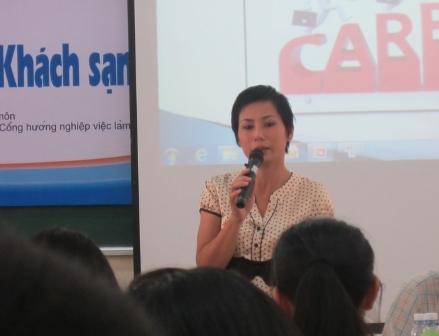 Bà Nguyễn Thanh Hà với thông tin về yêu cầu trong lĩnh vực Dịch vụ Khách sạn cùng cơ hội nghề nghiệp cho các sinh viên