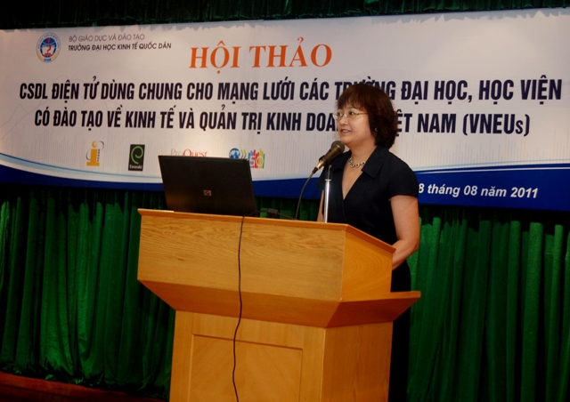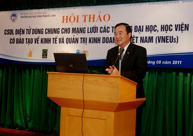 Ngày 18/8/2011, tại Phòng họp G2 Nhà 10, Trường Đại học Kinh tế Quốc dân, đã diễn ra hội thảo “Cơ sở dữ liệu điện tử dùng chung cho mạmg lưới các trường đại học, học viện có đào tạo về kinh tế và quản trị kinh doanh ở Việt Nam ( VNEUs). Tham dự hội thảo có PGS.TS Trần Quang Quý – Thứ trưởng Bộ GD- ĐT và gần 100 đại biểu đến một số vụ, cục Bộ GD- ĐT, các trường đại học, học viện có đào tạo về kinh tế và quản trị kinh doanh ở Việt Nam ( VNEUs), các nhà xuất bản danh tiếng: Emenrald, ProQuest, OECD, iGoup. Với tư cách là đơn vị sáng lập mạng lưới VNEUs tham dự hội thảo trường ĐHKTQD có : GS.TS Nguyễn Văn Nam- Hiệu Trưởng- chủ tịch VNEUs, PGS,TS Trần Thọ Đạt – Phó hiệu trưởng, GS.TS Phan Công Nghĩa – Phó hiệu trưởng, đại diện lãnh đạo các đơn vị và các giáo sư, các nhà nghiên cứu của trường.