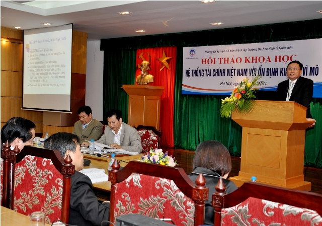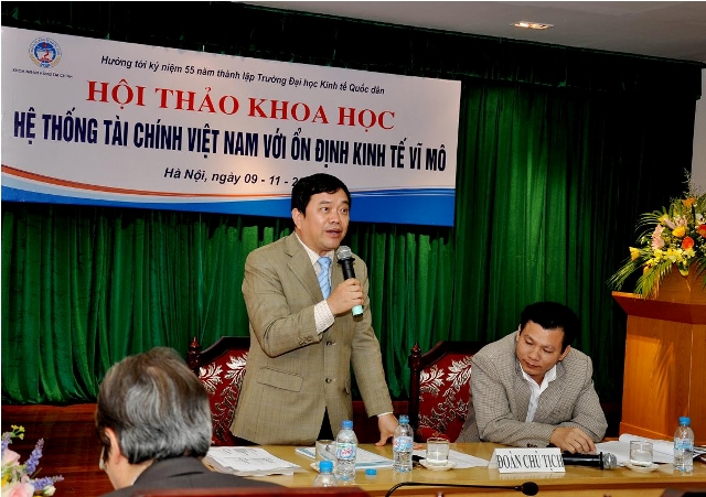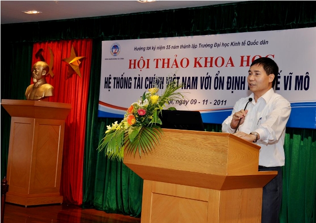 Chiều 9/11/2011, tại phòng Hội thảo Gác 2 nhà 10, Khoa Ngân hàng – Tài chính đã tổ chức hội thảo khoa học với chủ đề: “HỆ THỐNG TÀI CHÍNH VIỆT NAM VỚI ỔN ĐỊNH KINH TẾ VĨ MÔ”. Hội thảo là một trong các hoạt động hướng tới kỷ niệm 55 năm thành lập Khoa Ngân hàng – Tài chính và trường Đại học Kinh tế Quốc dân.