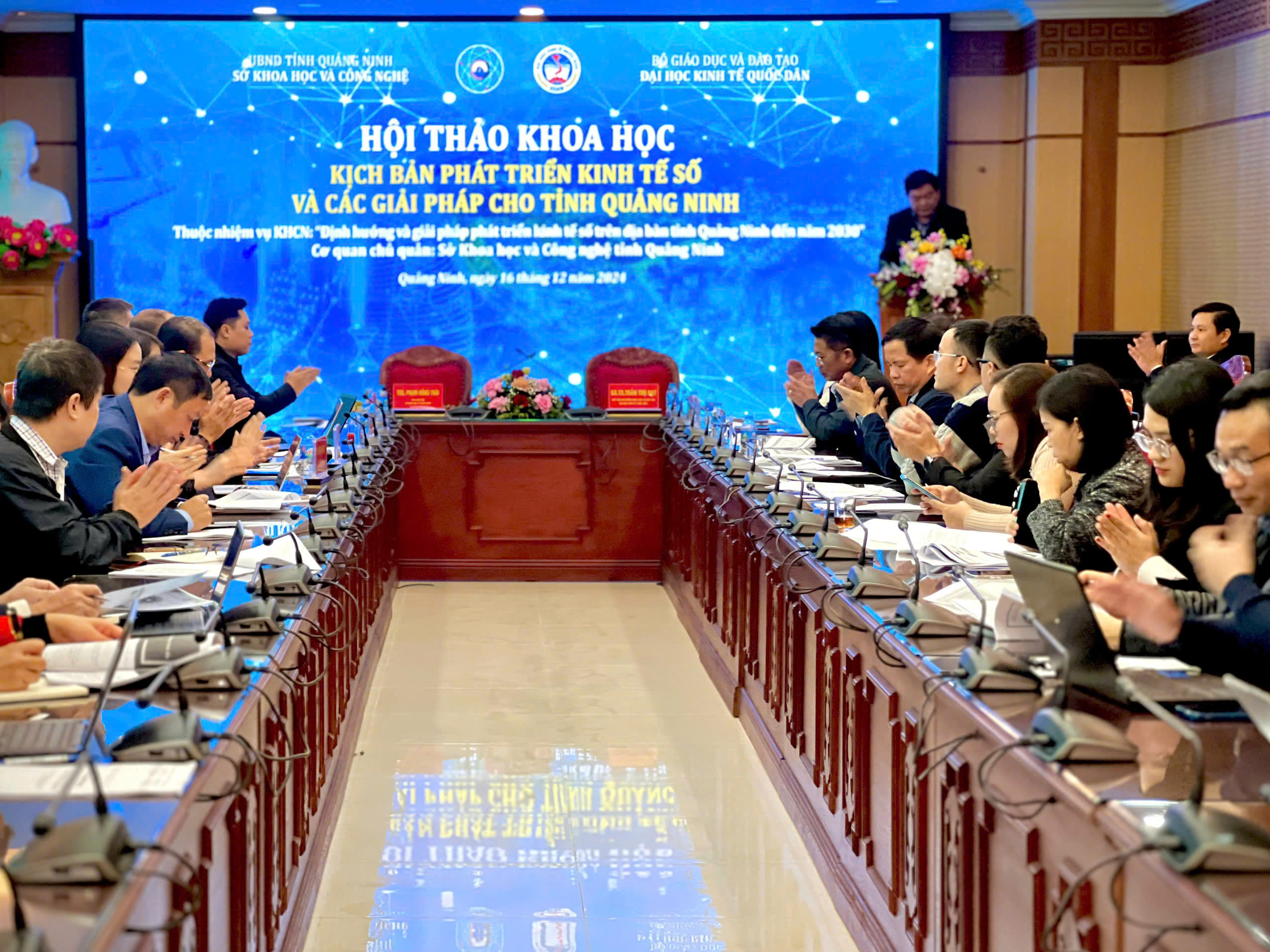 Ngày 16/12/2024 tại Quảng Ninh, Đại học Kinh tế Quốc dân phối hợp với Sở Khoa học và Công nghệ tỉnh Quảng Ninh đã tổ chức Hội thảo khoa học với chủ đề: “Kịch bản phát triển kinh tế số và các giải pháp cho tỉnh Quảng Ninh” trong khuôn khổ Nhiệm vụ KHCN cấp tỉnh: “Định hướng và giải pháp phát triển kinh tế số trên địa bàn tỉnh Quảng Ninh đến năm 2030”.