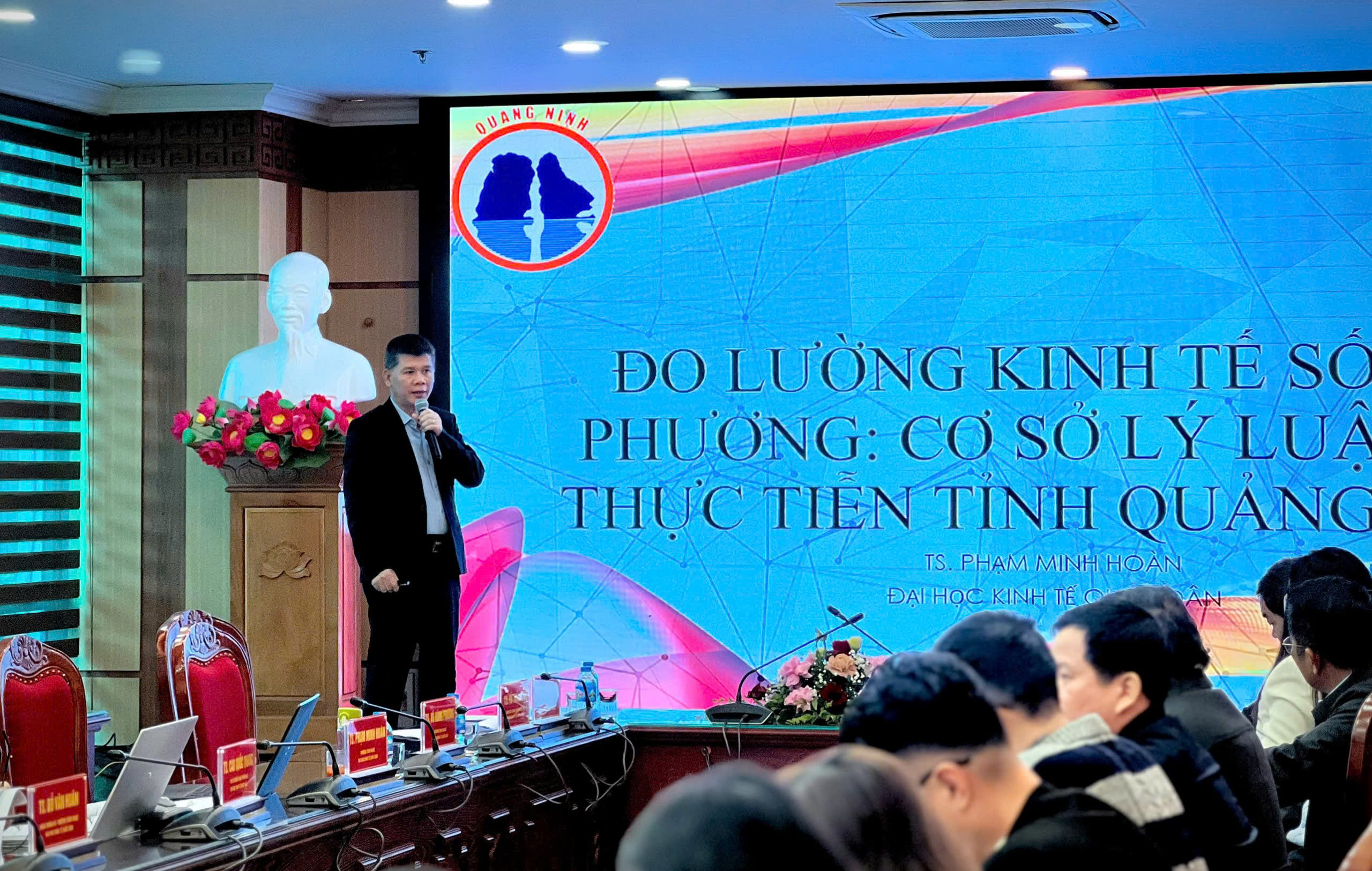 TS. Phạm Minh Hoàn – Trường Công nghệ, Đại học Kinh tế Quốc dân trình bày tham luận “Đo lường kinh tế số địa phương: Cơ sở lý luận và thực tiễn tỉnh Quảng Ninh”