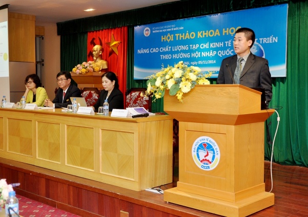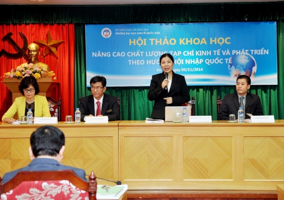 Nhằm nâng cao chất lượng Tạp chí Kinh tế và Phát triển theo hướng hội nhập quốc tế và hướng tới kỷ niệm 20 năm ngày thành lập Tạp chí Kinh tế và Phát triển, sáng ngày 05 tháng 11 năm 2014, tại G2.N10 trường Đại học Kinh tế Quốc dân đã diễn ra Hội thảo khoa học: “Nâng cao chất lượng Tạp chí Kinh tế và Phát triển theo hướng hội nhập quốc tế”. Đến dự Hội thảo, về phía các vị đại biểu ngoài trường có: GS.TS. Nguyễn Văn Đính – Hiệu trưởng trường ĐH Hà Tĩnh, PGS.TS. Nguyễn Trọng Hoài – Phó Hiệu trưởng trường ĐH Kinh tế TP.Hồ Chí Minh, GS.TS.Dương Thị Bình Minh – Tổng Biên tập Tạp chí Phát triển Kinh tế, PGS.TS. Hạ Thị Thiều Dao – TBT Tạp chí Công nghệ Ngân hàng, TS. Đặng Minh Đức – Phó TBT Tạp chí Nghiên cứu Châu Âu, TS. Trương Duy Hòa – Phó TBT Tạp chí Nghiên cứu Đông Nam Á, TS. Đỗ Thị Phương Lan – Phó TBT Tạp chí Kinh tế và Dự báo. Về phía Trường Đại học Kinh tế Quốc dân có: GS.TS.Trần Thọ Đạt – Bí thư Đảng ủy, Hiệu trưởng, GS.TS. Phan Công Nghĩa – Nguyên Phó Hiệu trưởng, GS.TSKH. Lương Xuân Quỳ – nguyên Hiệu trưởng, nguyên TBT Tạp chí KT & PT, GS.TSKH. Lê Du Phong – Nguyên Q.Hiệu trưởng cùng đông đảo các nhà khoa học, đại diện lãnh đạo các đơn vị, các phòng ban chức năng nhà trường.