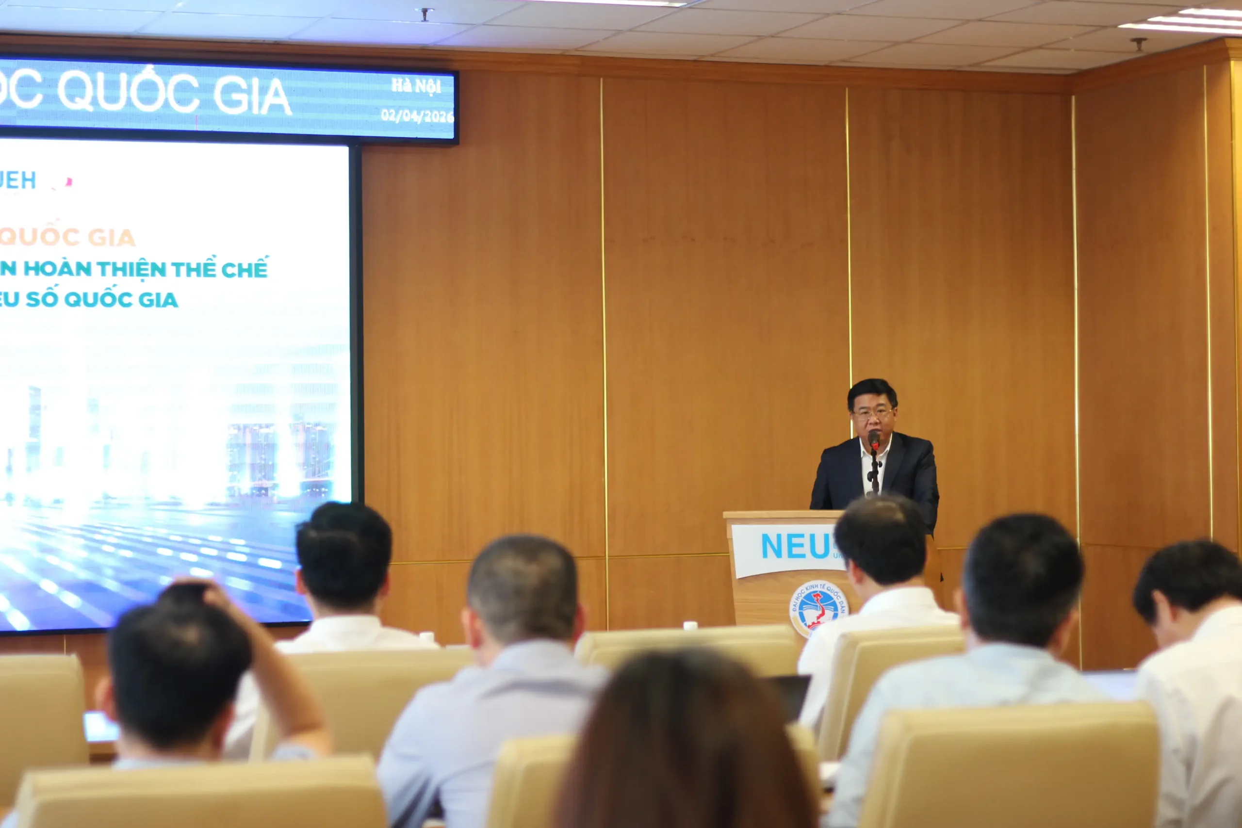 Ngày 02/4/2026, tại Đại học Kinh tế Quốc dân đã diễn ra Hội thảo khoa học quốc gia với chủ đề “Hệ thống cơ sở lý luận và thực tiễn hoàn thiện thể chế xây dựng và quản trị dữ liệu số quốc gia”. Hội thảo do Đại học Kinh tế Quốc dân phối hợp với Đại học Kinh tế TP. Hồ Chí Minh đồng tổ chức, thu hút sự tham gia của đông đảo nhà khoa học, chuyên gia, nhà quản lý và đại diện các cơ quan, doanh nghiệp.