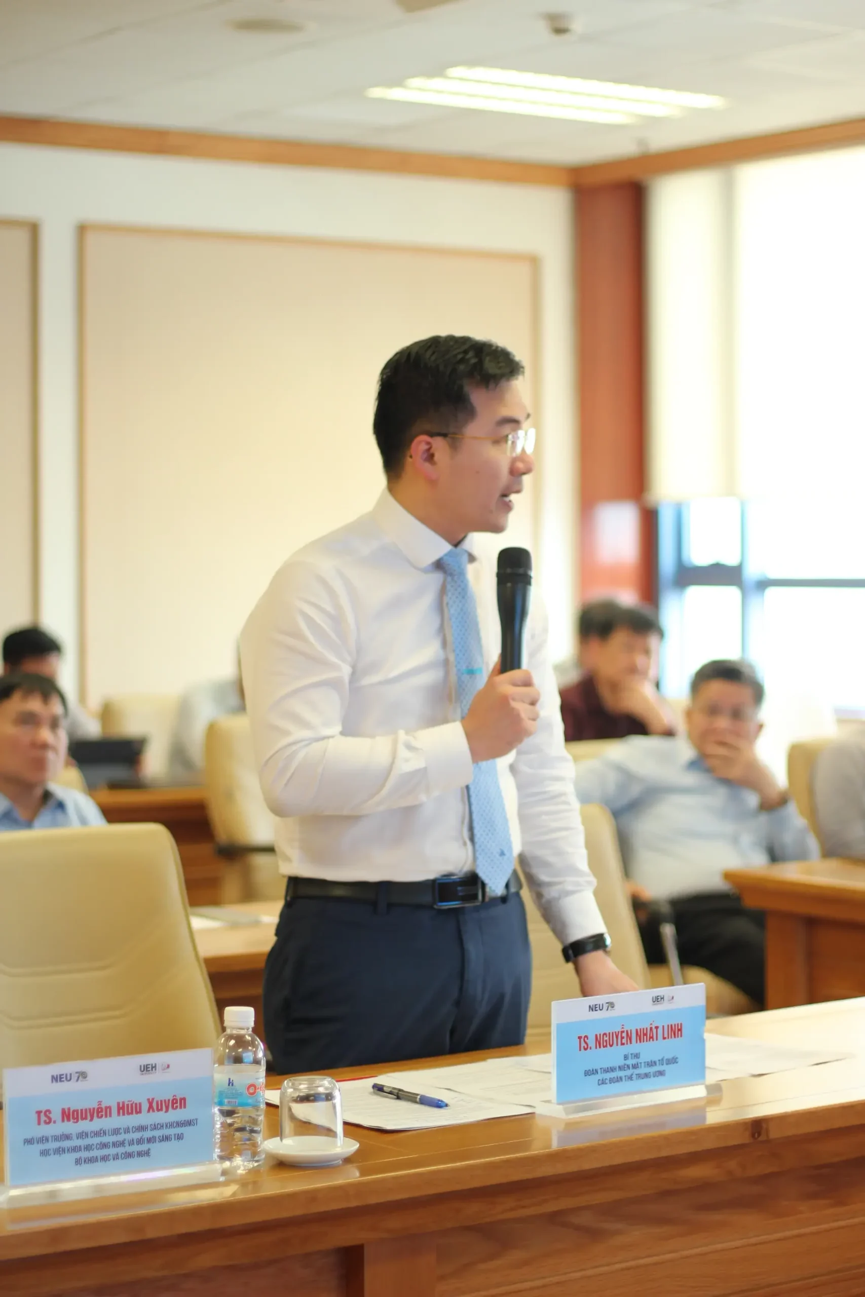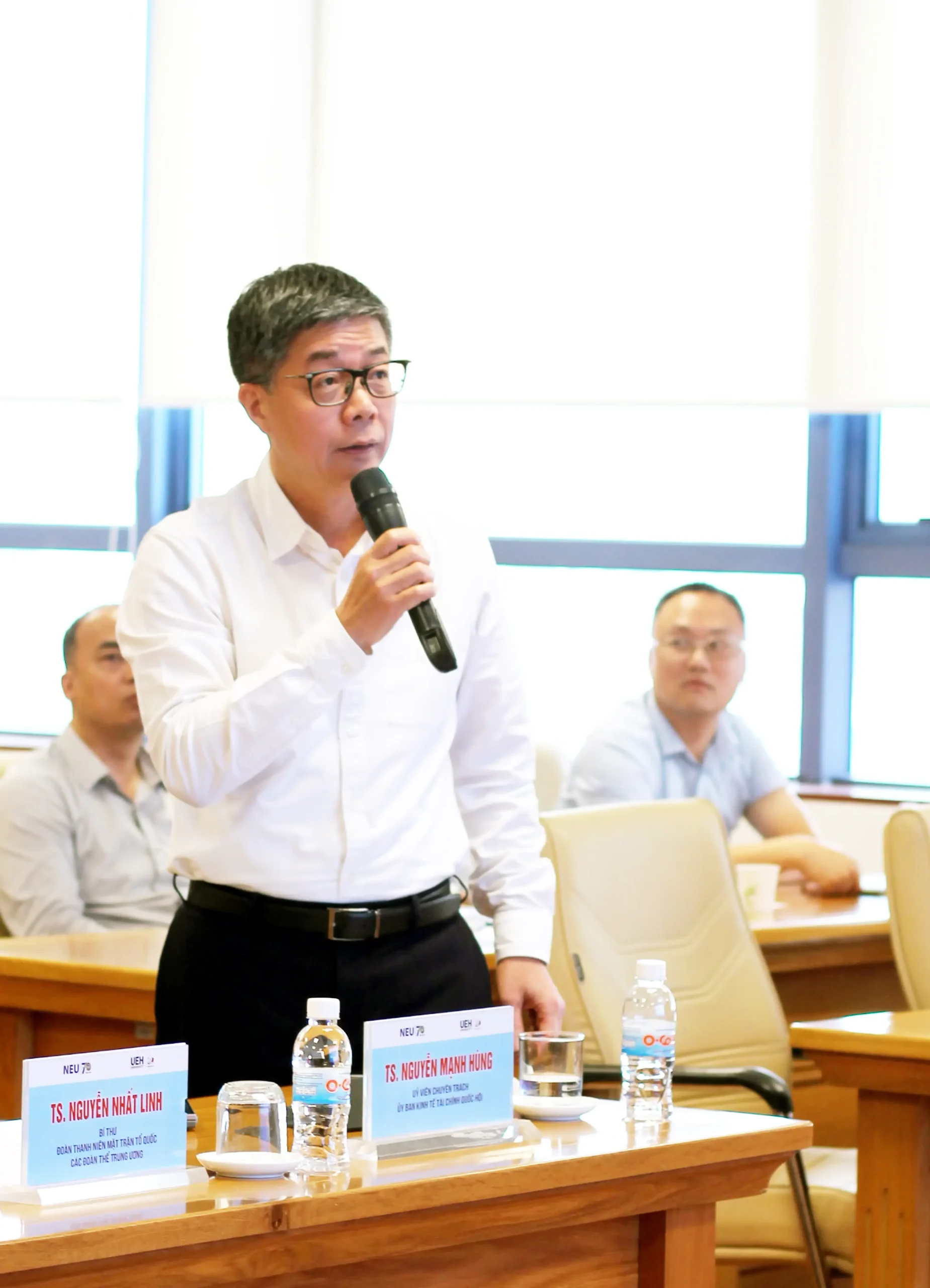 Tham dự Hội thảo, về phía đại biểu ngoài trường có: TS. Nguyễn Mạnh Hùng – ĐBQH Khóa XVI, Ủy ban Kinh tế và Tài chính của Quốc hội; TS. Nguyễn Quang Huy – Phó Vụ trưởng Vụ Kinh tế Tổng hợp, Ban Chiến lược chính sách TW Đảng; TS. Tô Hồng Nam – Phó Cục trưởng Cục KHCN&TT, Bộ GD&ĐT; TS. Nguyễn Hữu Xuyên – Phó Viện trưởng Viện Chiến lược và Chính sách, KHCN&ĐMST, Học viện KHCN&ĐMST, Bộ KH&CN; TS. Nguyễn Nhất Linh – Bí thư Đoàn TNCS Hồ Chí Minh Mặt trận Tổ quốc, các đoàn thể TW; PGS.TS Phạm Ngọc Thạch – Bí thư Đảng ủy Trường Đại học Hà Nội.