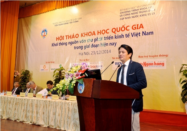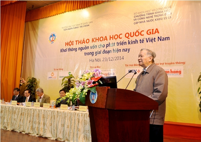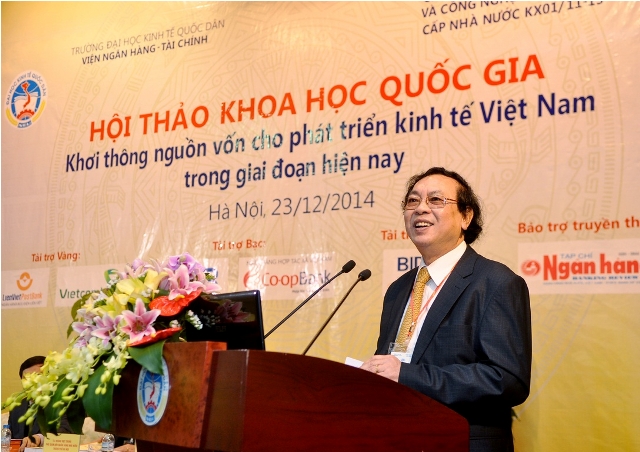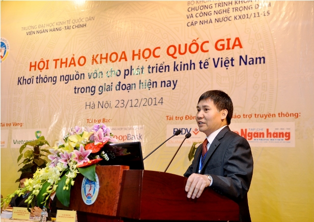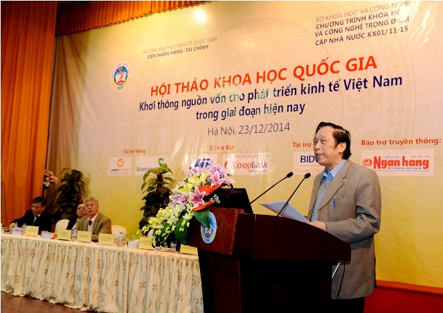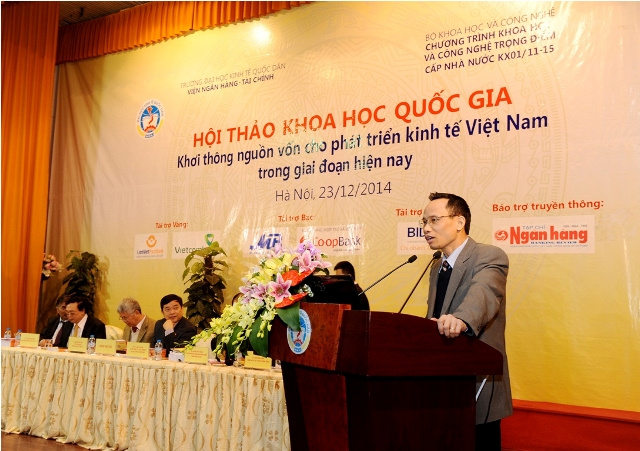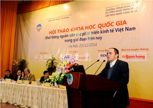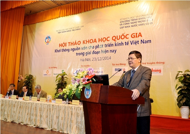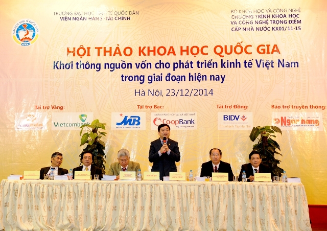 Sáng ngày 23 tháng 12 năm 2014 vừa qua, tại Trường Đại học Kinh tế Quốc dân, khoảng 400 chuyên gia và các nhà khoa học đầu ngành đã tham dự Hội thảo khoa học cấp quốc gia “Khơi thông nguồn vốn cho phát triển kinh tế Việt Nam trong giai đoạn hiện nay” do Viện Ngân hàng – Tài chính (Trường Đại học KTQD) phối hợp với Chương trình khoa học và công nghệ trọng điểm cấp Nhà nước KX.01/11-15 tổ chức. Hội thảo đã thu hút được 105 bài viết của trên 200 chuyên gia, các nhà khoa học trong cả nước. Phó Chủ nhiệm Ủy ban Kinh tế của Quốc hội – TS. Nguyễn Đức Kiên đã tham gia Đoàn chủ tịch điều hành Hội thảo.