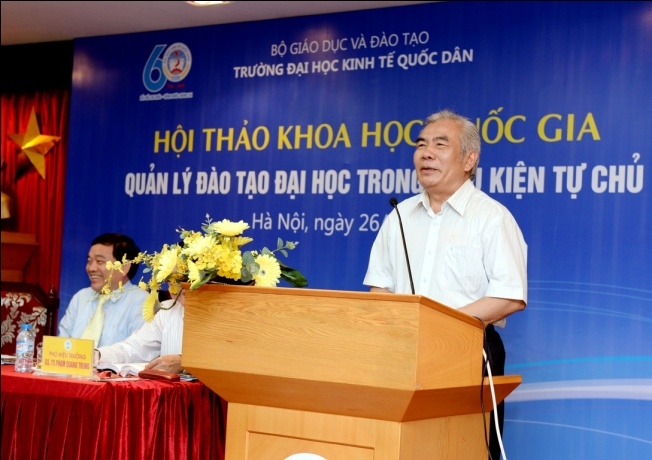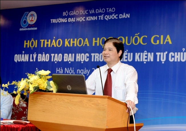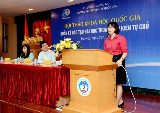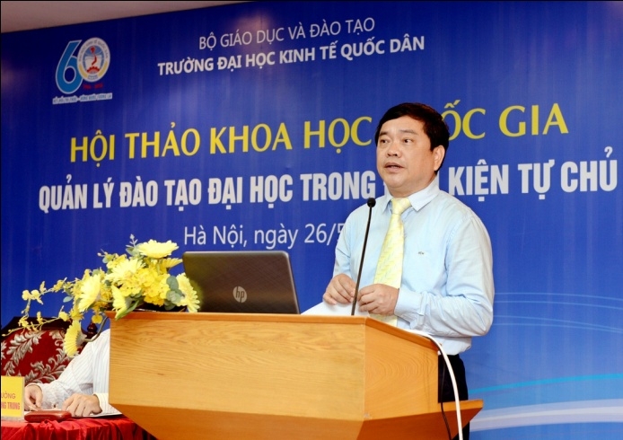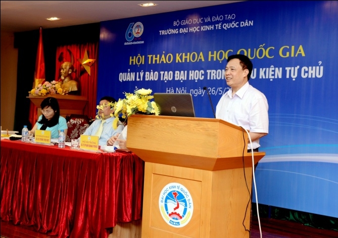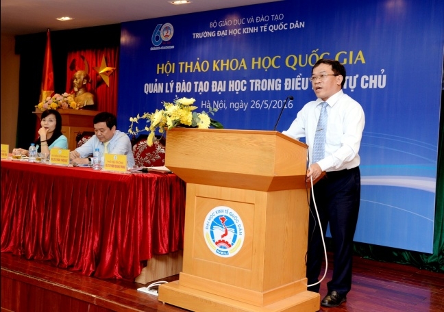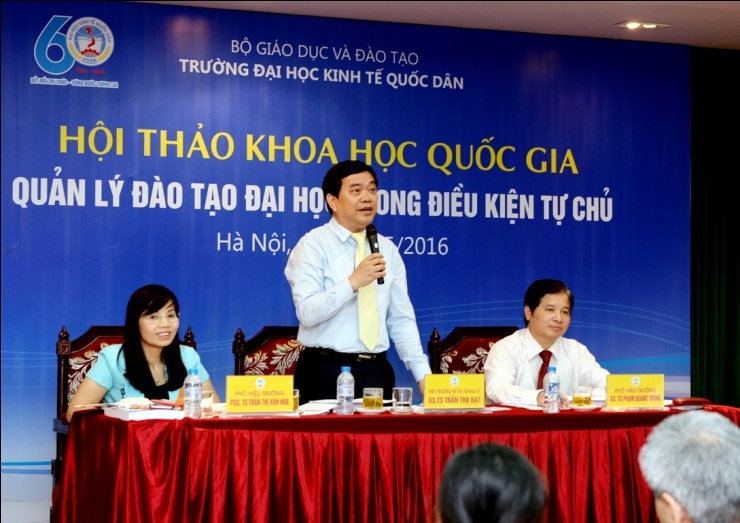 Ngày 26/5/2016, trường Đại học Kinh tế Quốc dân tổ chức Hội thảo khoa học quốc gia “Quản lý đào tạo Đại học trong điều kiện tự chủ”.Tham dự Hội thảo, về phía Bộ GD&ĐT có ông Nguyễn Đình Mạnh – Phó Chánh văn phòng; TS. Nguyễn Thị Thu Hà – Chuyên viên cao cấp Vụ Giáo dục Đại học. Từ các cơ sở giáo dục đại học trong nước có: PGS.TS Nguyễn Văn Hiến – Phó Hiệu trưởng trường ĐH Tài chính Marketing; PGS.TS Trần Đình Khôi Nguyên – Phó Hiệu trưởng trườngĐại học Kinh tế, Đại học Đà Nẵng; PGS.TS Lê Thị Thu Thủy – Phó Hiệu trưởng trường ĐH Ngoại thương; PGS.TS Ngô Văn Hiền – Chánh văn phòng Học Viện tài chính; PGS.TS Vũ Anh Dũng – Phó Hiệu trưởng trường ĐH Việt Nhật. Về phía trường Đại học Kinh tế quốc dân (ĐH KTQD) có GS.TS Trần Thọ Đạt – Bí thư Đảng ủy, Hiệu trưởng; GS.TS Phạm Quang Trung – Phó Hiệu trưởng; PGS.TS Phạm Hồng Chương – Phó Hiệu trưởng; PGS.TS Trần Thị Vân Hoa – Phó Hiệu trưởng; PGS.TS Hoàng Văn Cường – Phó Hiệu trưởng; các Giáo sư, Phó Giáo sư trong Hội đồng Khoa học và Đào tạo; lãnh đạo các khoa viện, phòng ban, tổ chức chính trị trong trường; cùng các tác giả đã tham gia viết bài cho Hội thảo.