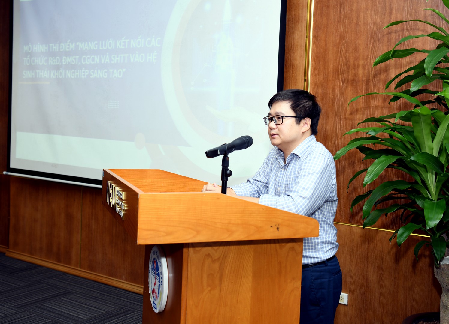 Ông Lương Văn Thường – Trưởng phòng Khởi nghiệp đổi mới sáng tạo, Cục Phát triển thị trường và doanh nghiệp khoa học và công nghệ, Bộ KH&CN trình bày tham luận: Mô hình thí điểm “Mạng lưới kết nối các tổ chức R&D, đổi mới sáng tạo, chuyển giao công nghệ, sở hữu trí tuệ vào hệ sinh thái khởi nghiệp đổi mới sáng tạo”
