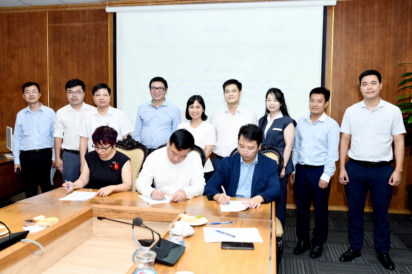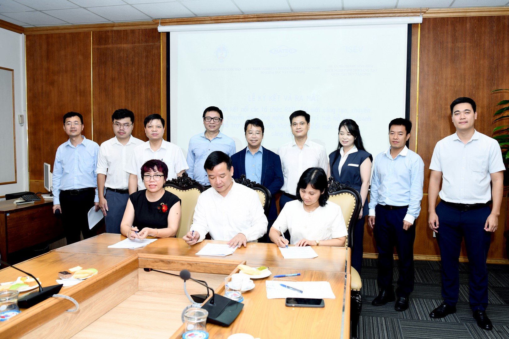Đại diện các đơn vị ký kết thoả thuận phối hợp về triển khai kết nối các tổ chức R&D – đổi mới sáng tạo – chuyển giao công nghệ – sở hữu trí tuệ vào hệ sinh thái khởi nghiệp ĐMST Quốc gia