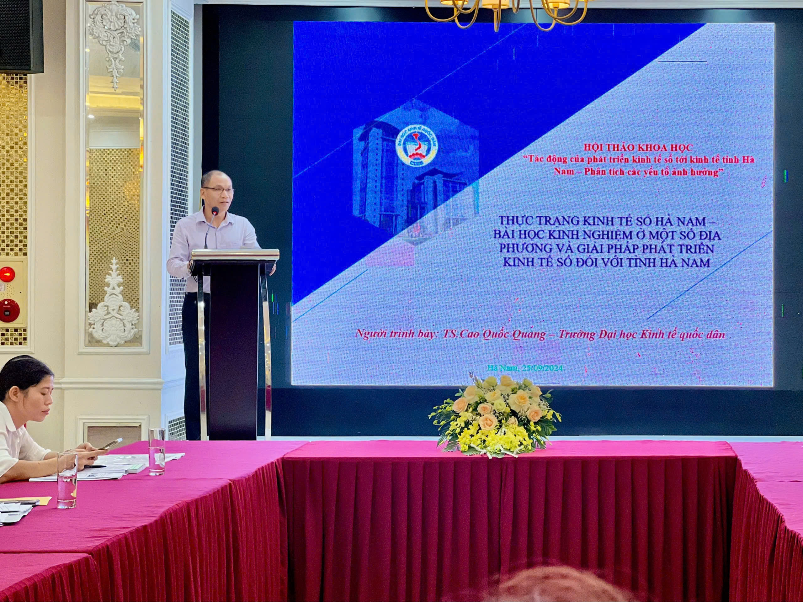 TS. Cao Quốc Quang – Phó Trưởng Khoa Thống Kê, Trường Công nghệ, Trường Đại học Kinh tế Quốc dân trình bày tham luận “Thực trạng kinh tế số Hà Nam – Bài học kinh nghiệm ở một số địa phương và giải pháp phát triển kinh tế số đối với tỉnh Hà Nam”