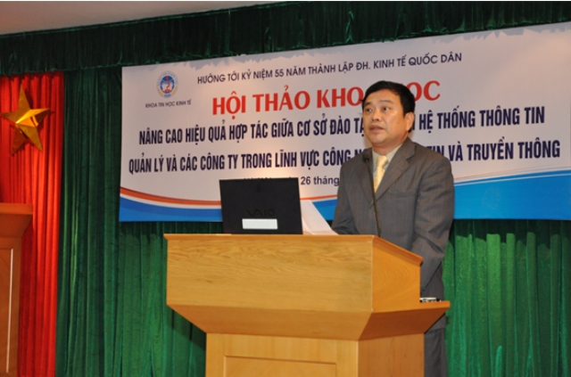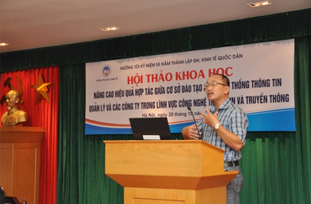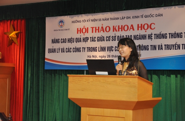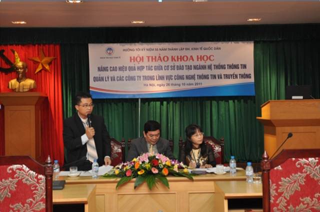 Trong niềm hân hoan đón chào Lễ kỷ niệm 55 năm ngày thành lập Trường Đại học Kinh tế Quốc dân, ngày 26 tháng 10 năm 2011, khoa Tin học Kinh tế đã tổ chức thành công Hội thảo khoa học với chủ đề “Nâng cao hiệu quả hợp tác giữa cơ sở đào tạo ngành Hệ thống thông tin Quản lý và các công ty trong lĩnh vực công nghệ thông tin và truyền thông”.