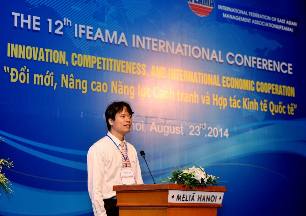Ngày 23 tháng 08 năm 2014, tại Khách sạn Melia, Trường Đại học Kinh tế Quốc dân đã phối hợp với Liên đoàn Quốc tế các Hiệp hội Quản lý Đông Á (IFEAMA) tổ chức hội thảo lần thứ 12 tại Hà Nội với chủ đề: “Đổi mới, Nâng cao năng lực cạnh tranh và Hợp tác Kinh tế Quốc tế”. Hội thảo nằm trong khuôn khổ hợp tác về nghiên cứu và trao đổi giảng viên giữa Viện Quản trị Kinh doanh (Business School) – Trường Đại học Kinh tế Quốc dân với các trường đại học của Nhật Bản và một số nước trong khu vực. Tới dự buổi hội thảo, về phía khách mời quốc tế có Giáo sư Hiromi SHIOJI – Chủ tịch Hội Quản trị Châu Á Nhật Bản; Giáo sư Zhang Yang Chủ tịch Liên đoàn quốc tế các hiệp hội Quản trị Đông Á và hơn 150 chuyên gia về kinh tế, quản lý và quản trị kinh doanh đến từ các quốc gia như Nhật Bản, Nga, Trung Quốc, Mông Cổ, Nepan, Hunggary, Đức, Ấn Độ. Về phía Đại học Kinh tế Quốc dân có GS. TS Trần Thọ Đạt, Phó Hiệu trưởng; PGS. TS Trần Thị Vân Hoa, Viện trưởng Viện Quản trị kinh doanh; PGS. TS Phạm Hồng Chương, Trưởng phòng Quản lý Khoa học và đông đảo các Giáo sư, Tiến sỹ, các nhà khoa học của Trường.