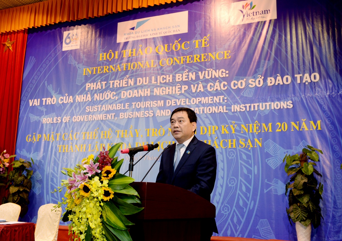 Phát triển du lịch bền vững được đặt ra là một trong những định hướng chiến lược quan trọng của du lịch Việt Nam trong thời gian trước mắt và lâu dài. Để đạt được mục tiêu này, phát huy vai trò và động lực của các bên liên quan trong phát triển du lịch là điều kiện không thể thiếu. Nhân dịp kỷ niệm 60 thành lập Trường Đại học Kinh tế Quốc dân, 20 năm thành lập Khoa Du lịch và Khách sạn (27 năm thành lập Bộ môn Kinh tế Dulịch), sáng ngày 9/10/2016, Trường Đại học Kinh tế Quốc dân đã phối hợp cùng Tổng cục Du lịch tổ chức Hội thảo khoa học quốc tế với chủ đề: “Phát triển du lịch bền vững: Vai trò của nhà nước, doanh nghiệp và cơ sở đào tạo”.
