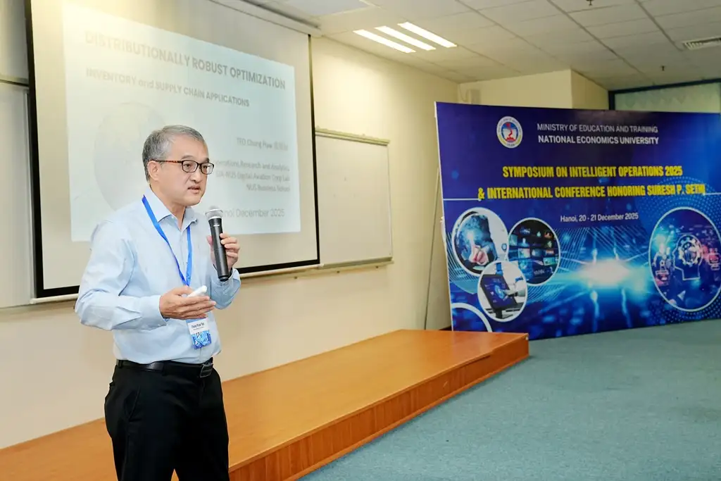Bên cạnh đó, GS. Chung Piaw Teo chỉ ra xu hướng kết hợp tối ưu hóa, mô hình hóa và phân tích dữ liệu thực nghiệm đang ngày càng trở nên phổ biến, đặc biệt trong bối cảnh trí tuệ nhân tạo phát triển nhanh chóng. Theo ông, các doanh nghiệp hiện nay không chỉ cần dự báo chính xác mà còn phải đưa ra các quyết định chất lượng, từ quản lý tồn kho đa nguồn đến định giá các dịch vụ hàng không phụ trợ.