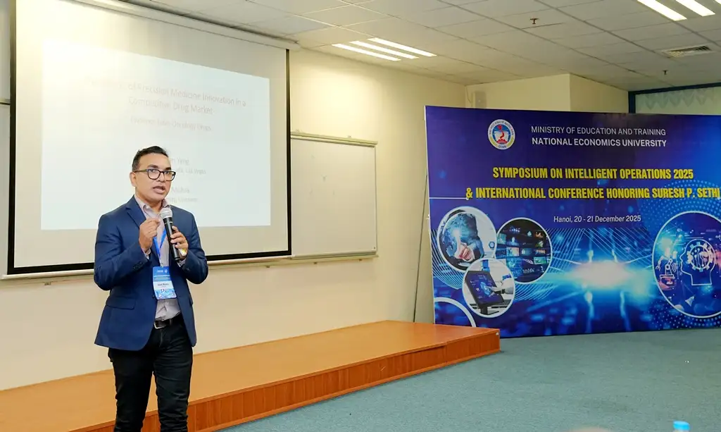 Đáng chú ý, hội thảo có sự tham gia của GS. Suresh Sethi – một trong những học giả hàng đầu thế giới trong lĩnh vực quản trị vận hành và tối ưu hóa. Trong sự nghiệp học thuật, Giáo sư đã xuất bản 11 cuốn sách và hơn 400 công trình nghiên cứu khoa học, được vinh danh bởi nhiều hiệp hội nghề nghiệp uy tín như IEEE, INFORMS, SIAM, POMS và AAAS. GS. Sethi từng đảm nhiệm cương vị Chủ tịch Hiệp hội Quản trị Sản xuất và Vận hành (POMS) năm 2012, đồng thời được trao nhiều giải thưởng danh giá, tiêu biểu như IITB Distinguished Alumni Award và Alumni Achievement Award của Đại học Carnegie Mellon.