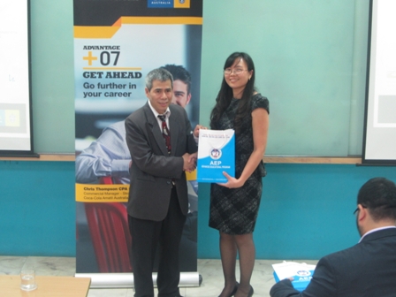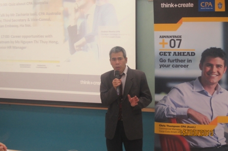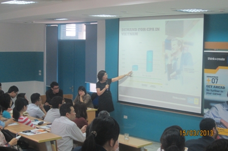 Bà Đỗ Thị Thanh Thủy đã trình bày tổng quát về mạng lưới của CPA trên toàn cầu và cơ hội học tập nâng cao trình độ cho sinh viên tốt nghiệp chuyên ngành kế toán – kiểm toán. Cũng trong hội thảo, bà Nguyễn Thị Thúy Hồng đã trình bày về cơ hội cho sinh viên được thực tập thực hành ở các công ty có kinh nghiệm và uy tín trong lĩnh vực kế toán – kiểm toán nhằm tạo điều kiện cho sinh viên tìm được nơi thực tập và việc làm sau này.