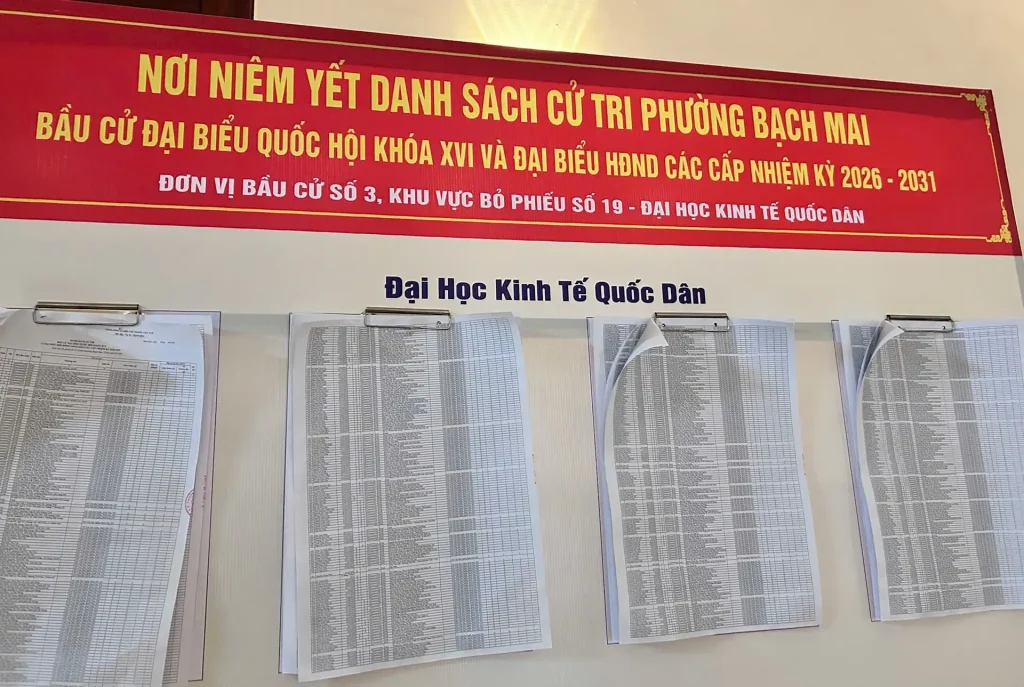 Khu vực bỏ phiếu số 19 – Đại học Kinh tế Quốc dân niêm yết danh sách cử tri