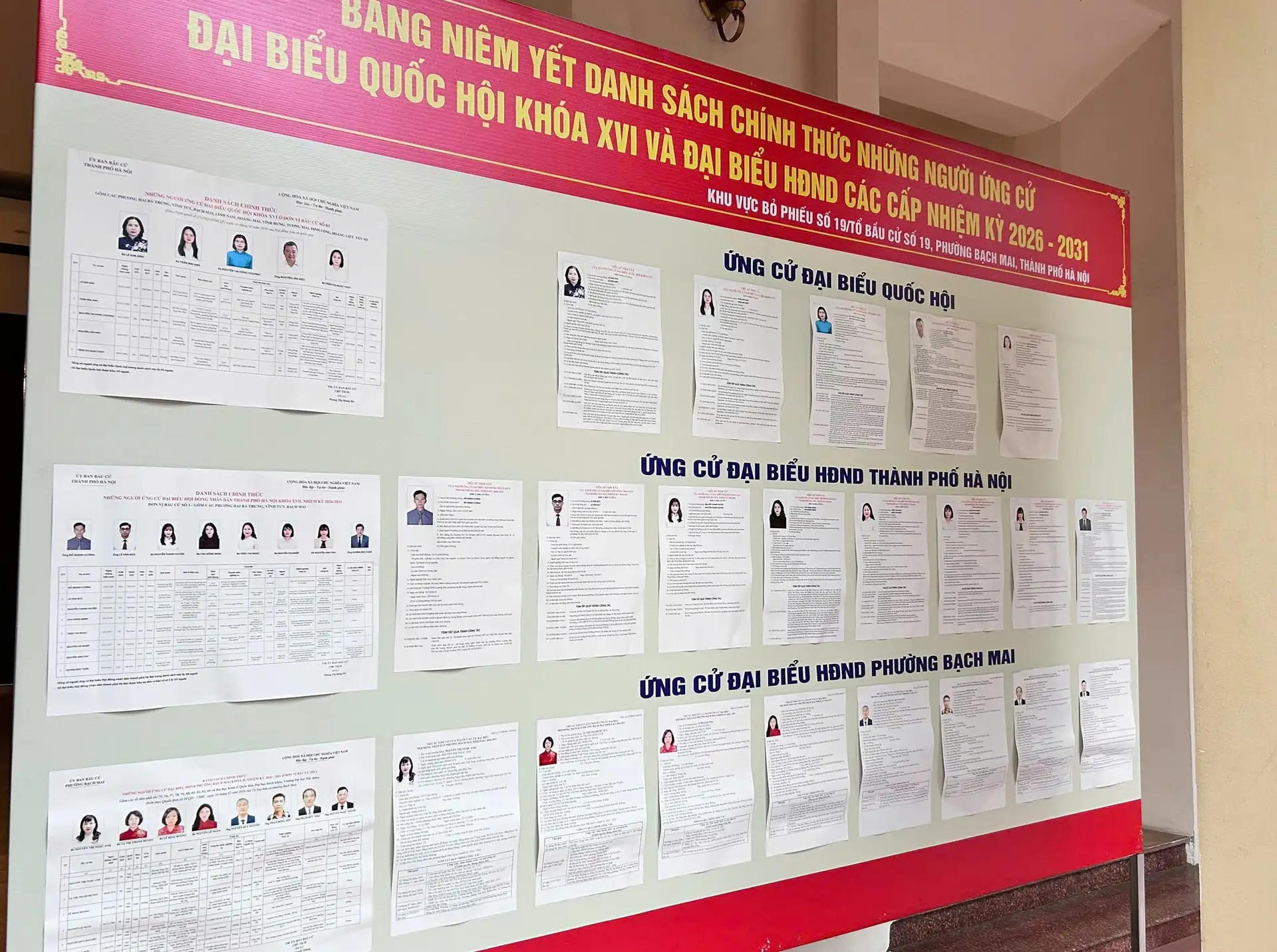 Khu vực bỏ phiếu số 19 – Đại học Kinh tế Quốc dân niêm yết danh sách người ứng cử đại biểu Quốc hội khóa XVI và đại biểu HĐND các cấp