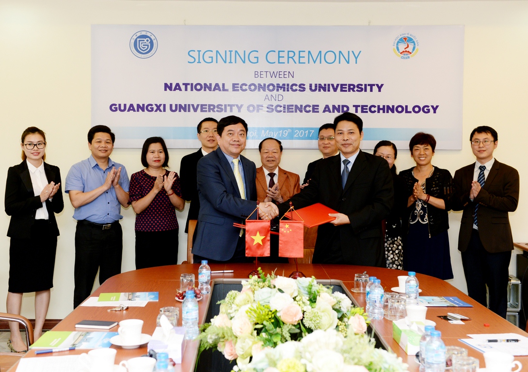 Ngày 19/5/2017, tại Phòng họp G2N7, Trường Đại học Kinh tế Quốc dân (ĐH KTQD) và Trường Đại học Khoa học – Kỹ thuật Quảng Tây, Trung Quốc (ĐH KH – KT) đã tổ chức Lễ ký kết biên bản ghi nhớ. Hai bên thống nhất sẽ triển khai chương trình trao đổi sinh viên ngắn hạn và các chương trình thực tập chosinh viên năm cuối.
