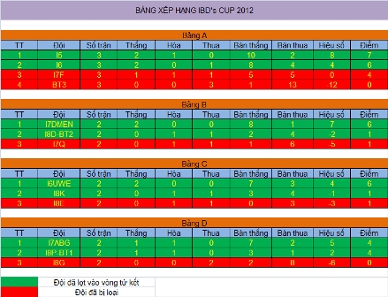 Lần lượt 15 trận cầu nảy lửa của vòng bảng đã diễn ra trong không khí bùng nổ, cống hiến cho các cổ động viên những pha xử lý bóng kỹ thuật, những bàn thắng đẹp, và cả những tình huống tranh bóng kịch tính đến thót tim. Để đáp lại tinh thần thi đấu của các cầu thủ là sự cổ vũ cuồng nhiệt của các cổ động viên dẫu cho mưa gió hay cái lạnh tê người của tiết trời Đông sáng sớm. Quả thật đây chính là những nhân tố tạo nên bức tranh đầy màu sắc hứng khởi của giải đấu IBD’s CUP 2012.