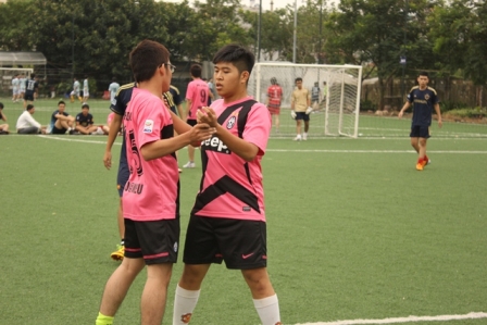Hai cầu thủ của đội I7DMEN ăn mừng chiến thắng