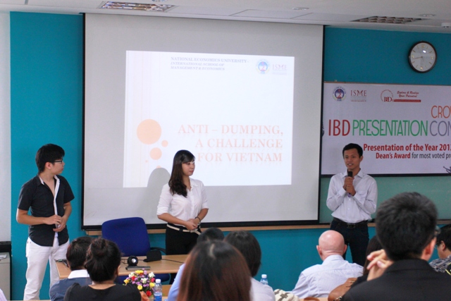 Ngày 30/6/2012, cuộc thi thuyết trình thường niên của Chương trình Cử nhân Quốc tế IBD PRESENTATION CONTEST 2012 đã được tổ chức thành công. Những bài thuyết trình xuất sắc nhất của IBD@NEU trong năm học đã được tái hiện lại, để các sinh viên thêm một lần nữa được thể hiện, rèn giũa tài năng và sự sáng tạo của mình, các khán giả được thưởng thức sự tranh tài quyết liệt, và Ban Giám khảo đã trải qua những giây phút khó khăn để chọn lựa được nhà vô địch từ những bài thuyết trình rất bản sắc.