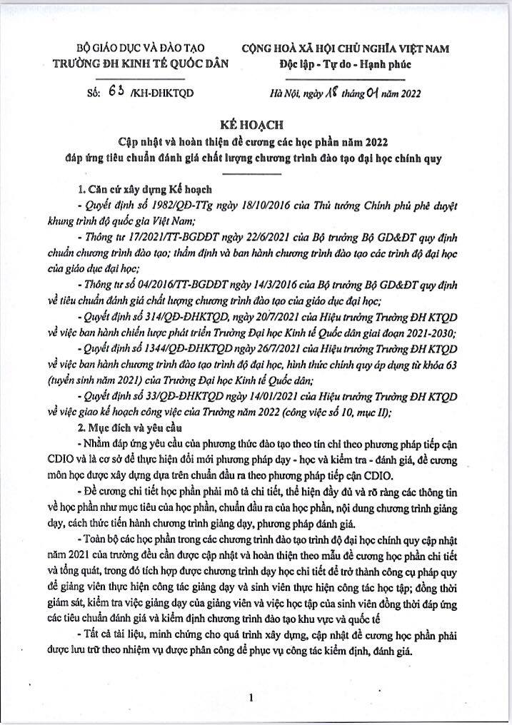 18/01/2022 2022-01-18 11:30Kế hoạch Cập nhật và hoàn thiện đề cương học phần năm 2022 đáp ứng yêu cầu chất lượng chương trình đào tạo hệ đại học chính quy