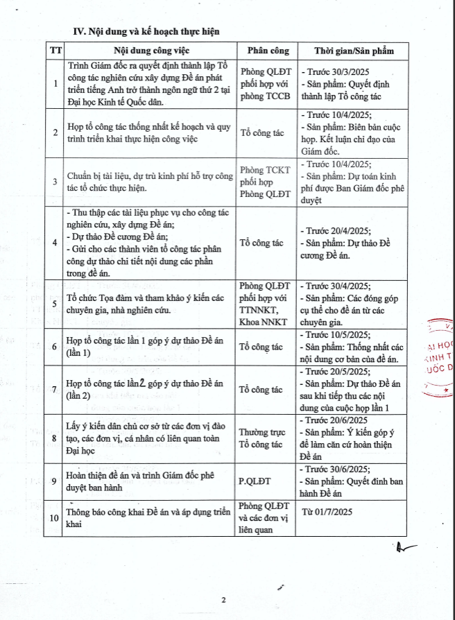 Kế hoạch Nghiên cứu xây dựng Đề án phát triển tiếng Anh trở thành ngôn ngữ thứ 2 tại Đại học Kinh tế quốc dân