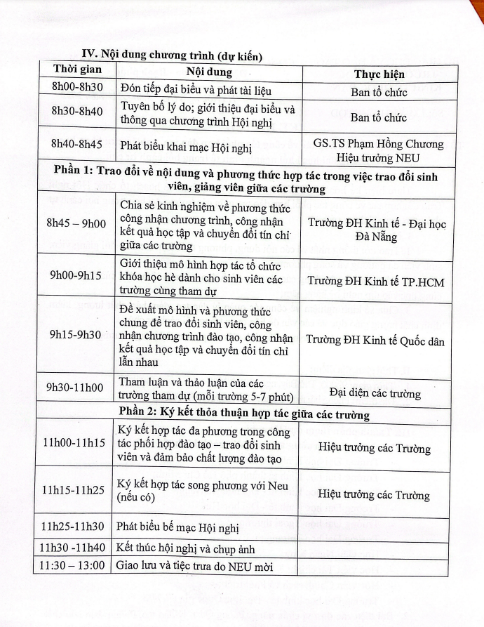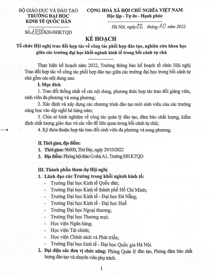 - Kế hoạch tổ chức hội nghị trao đổi hợp tác về công tác phối hợp đào nghiên cứu khoa học giữa các trường đại học khối ngành kinh tế trong bối cảnh tự chủ