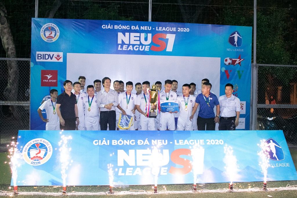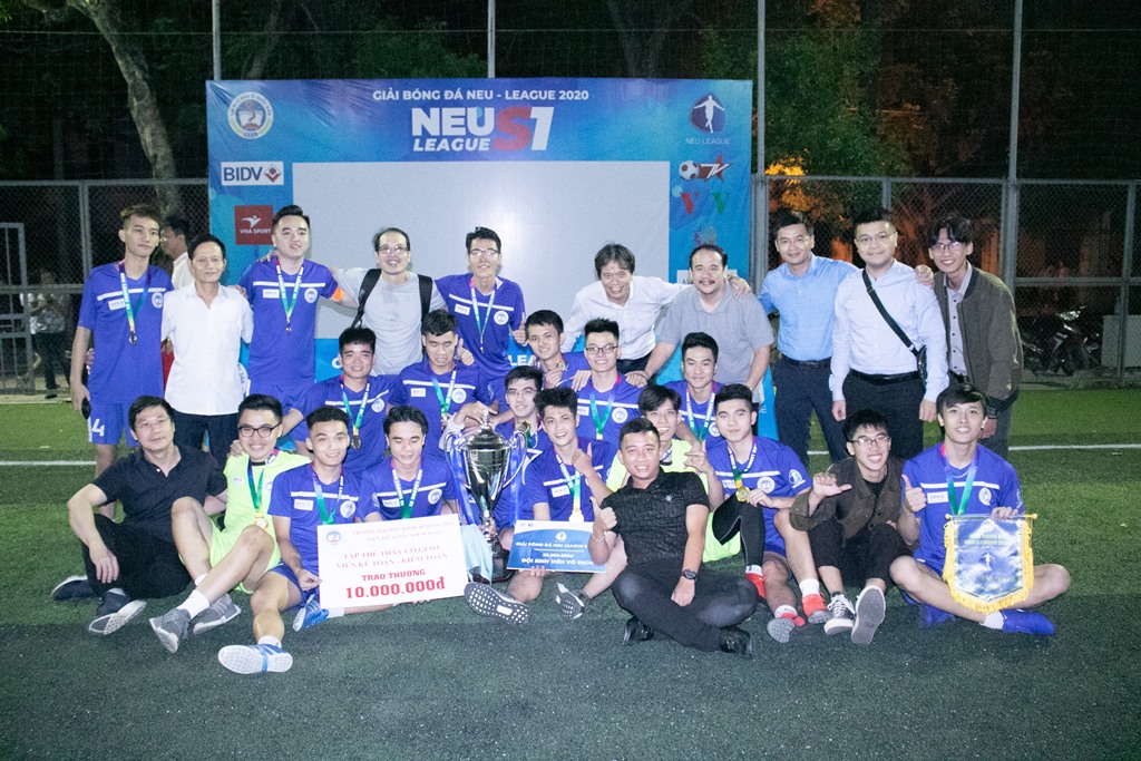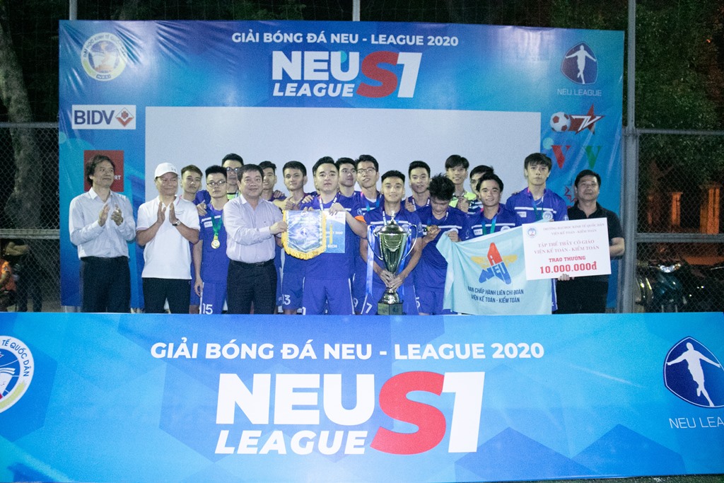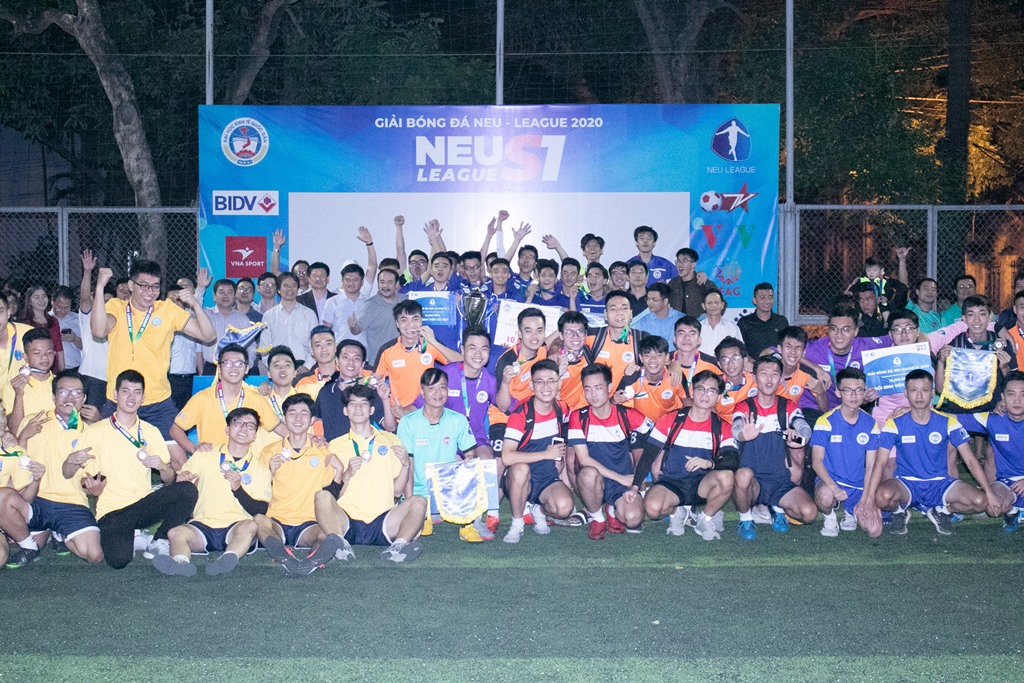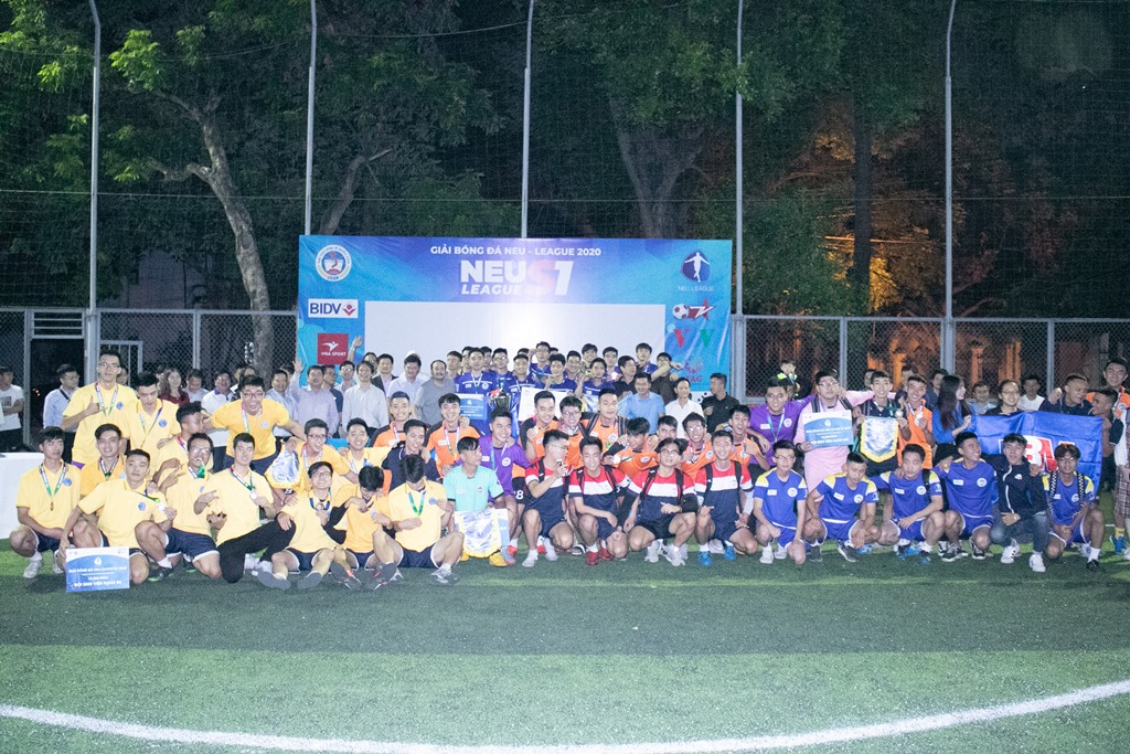 Sau 05 tháng tranh tài với hơn 200 trận đấu, cuối tuần vừa qua (10, 11/10/2020), giải bóng đá NEU – League 2020 do Trường đại học Kinh tế Quốc dân tổ chức đã kết thúc tốt đẹp với chức vô địch chung cuộc thuộc về BIDV Quang Trung và vô địch sinh viên thuộc về Viện Kế toán – Kiểm toán.