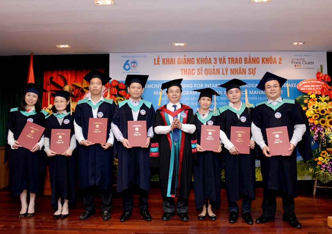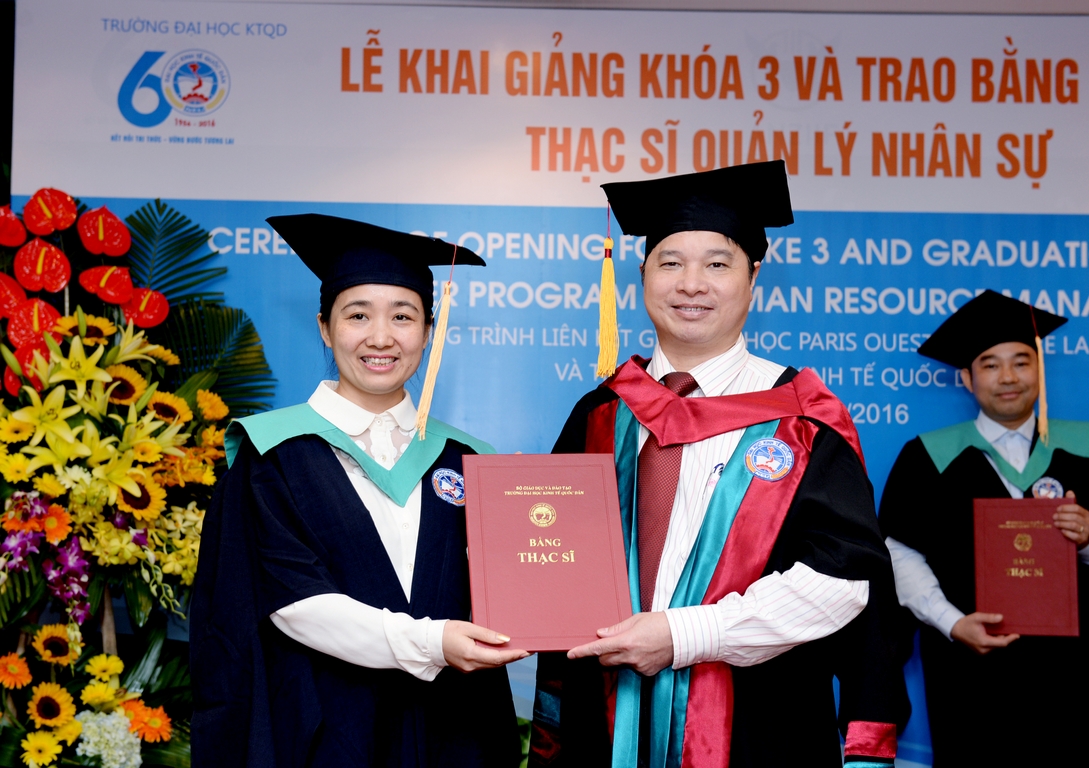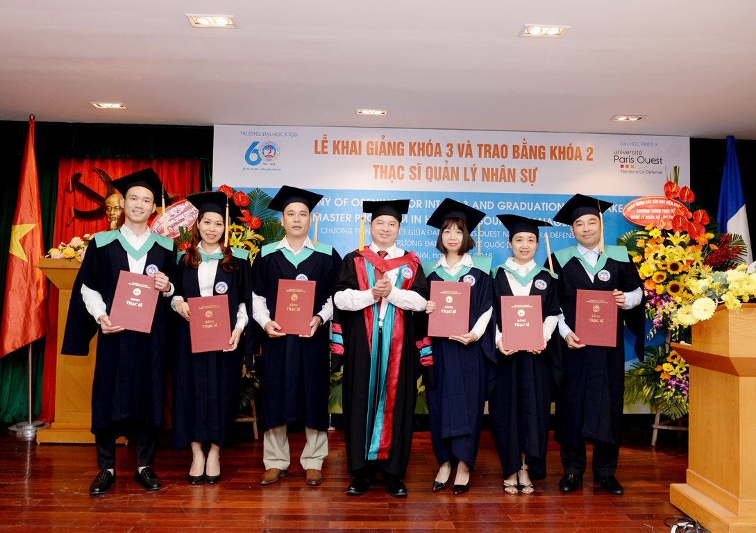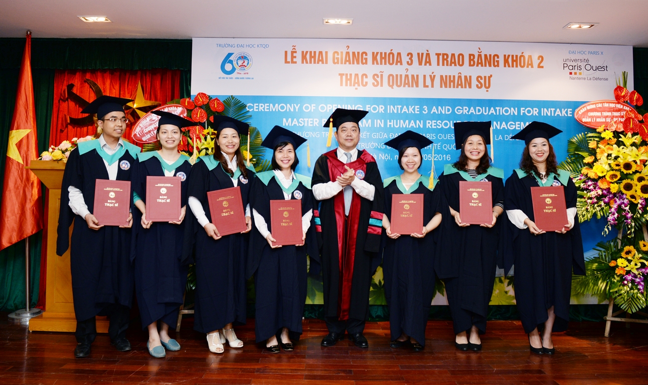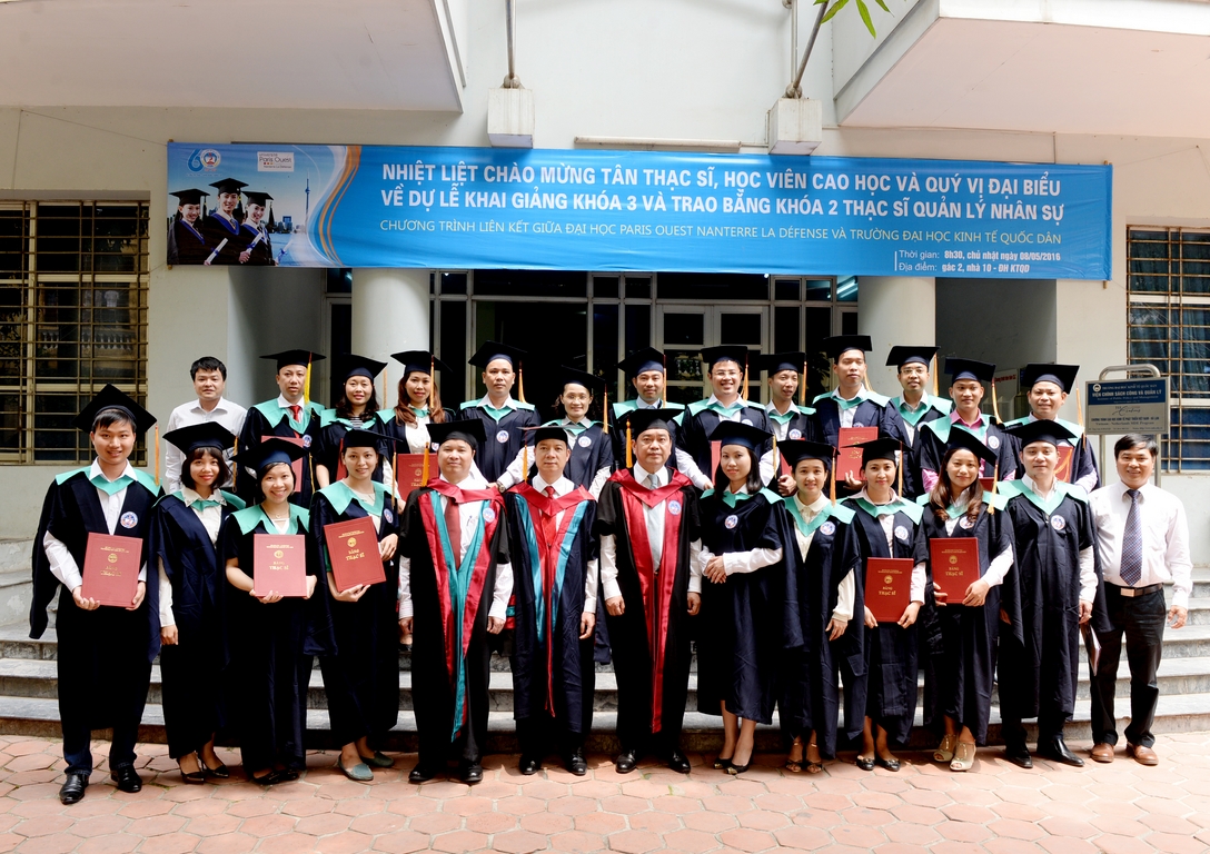 Ngày 9/5/2016, trường Đại học Kinh tế Quốc dân long trọng tổ chức lễ Khai giảng Cao học khóa 3 và Trao bằng Thạc sĩ Quản lý Nhân sự khóa 2 – thuộc chương trình liên kết đào tạo giữa trường Đại học Kinh tế Quốc dân và trường ĐH Paris Ouest Nanterre la Defense, Cộng hòa Pháp.