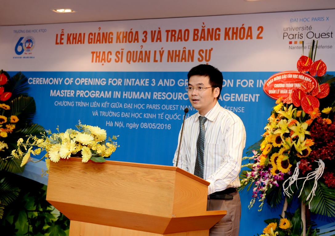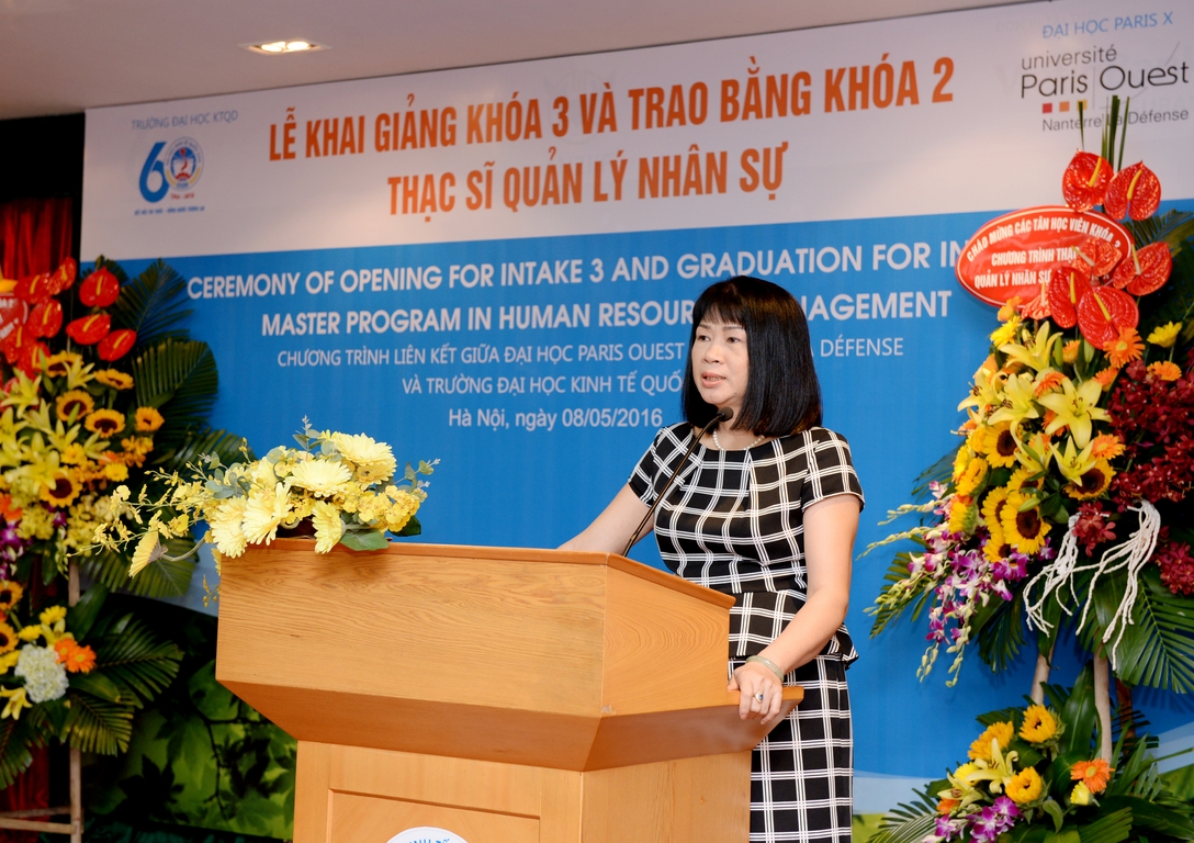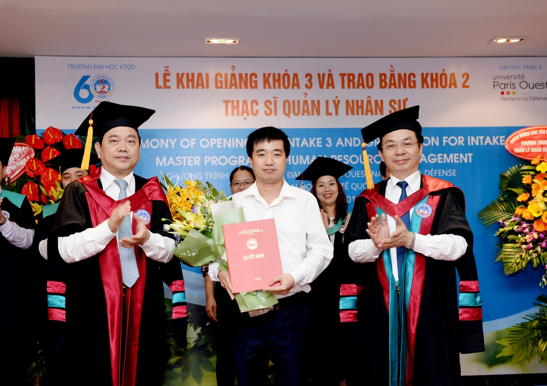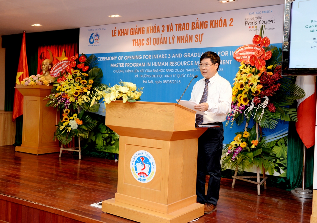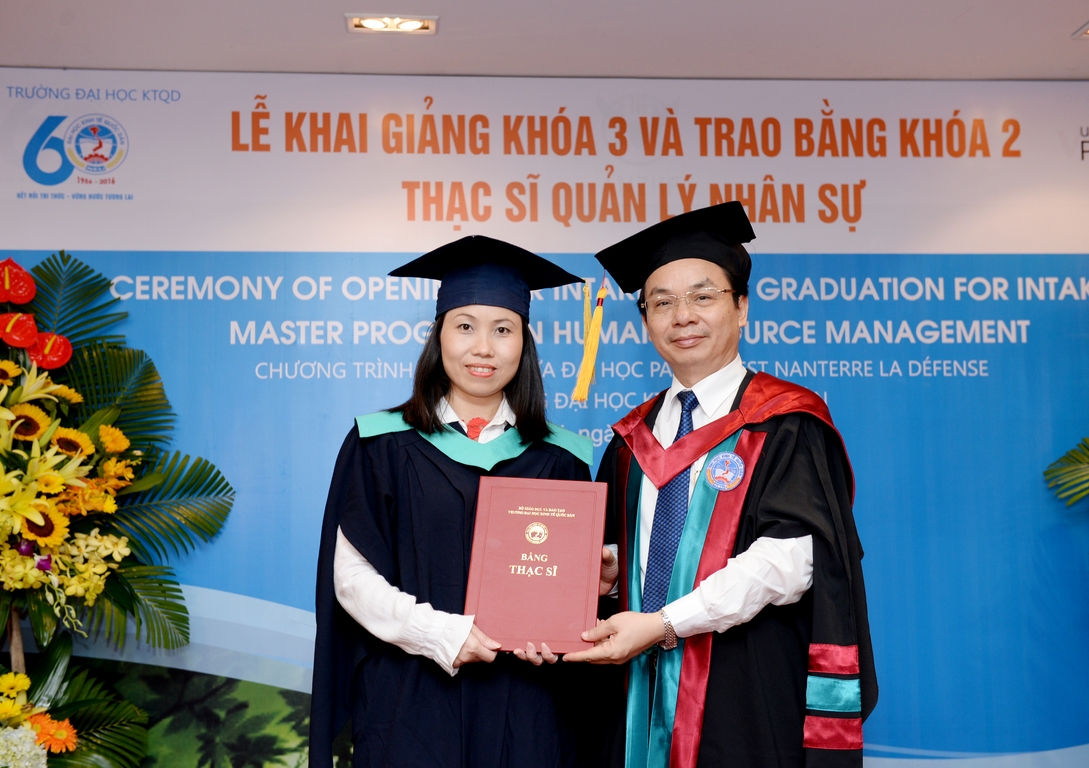Ngày 9/5/2016, trường Đại học Kinh tế Quốc dân long trọng tổ chức lễ Khai giảng Cao học khóa 3 và Trao bằng Thạc sĩ Quản lý Nhân sự khóa 2 – thuộc chương trình liên kết đào tạo giữa trường Đại học Kinh tế Quốc dân và trường ĐH Paris Ouest Nanterre la Defense, Cộng hòa Pháp.
