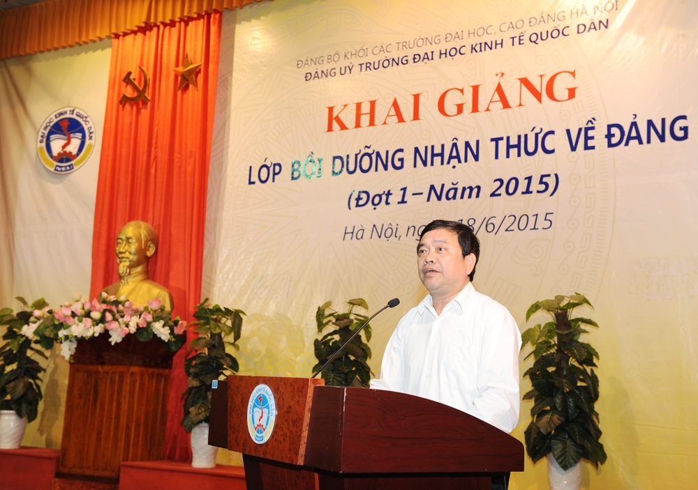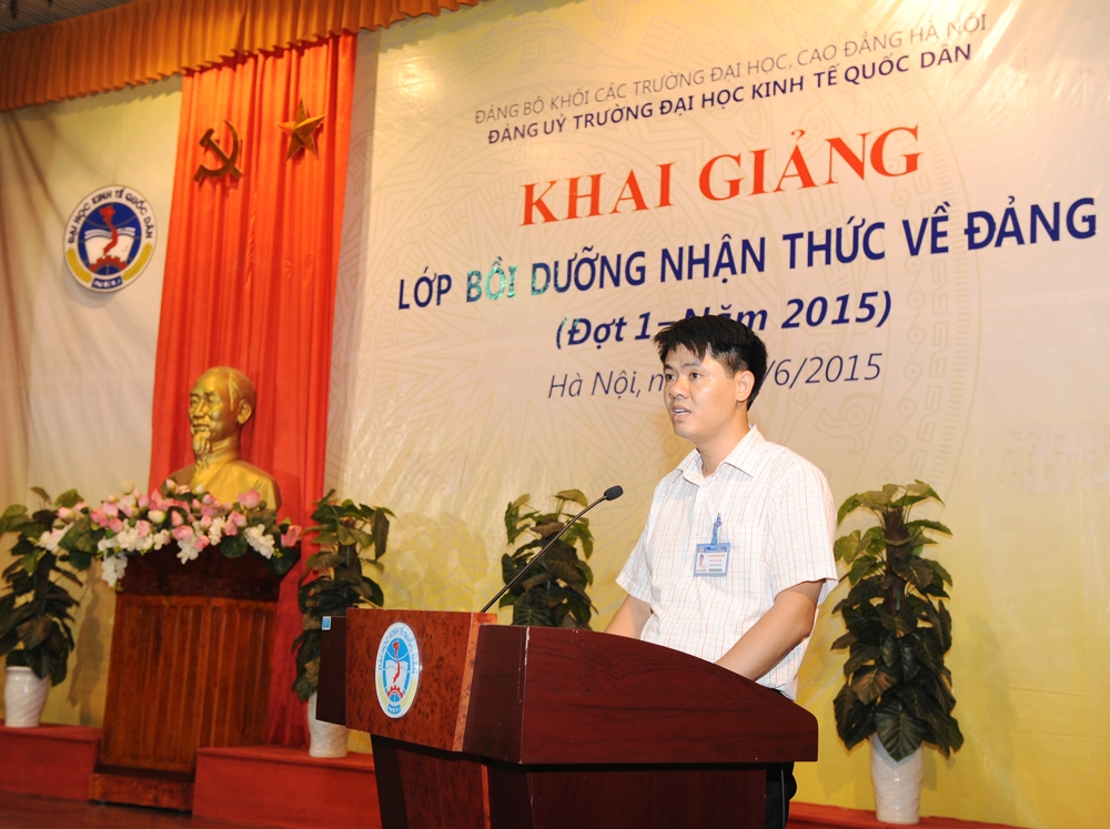 Thực hiện Nghị quyết Quý 2/2015 và Kế hoạch số125/KH-ĐU ngày 07/4/2015 của Đảng uỷ Trường về tổ chức lớp Bồi dưỡng nhận thức về Đảng cho Học viên đối tượng kết nạp Đảng, tối 18/6/2015 tại Nhà văn hoá Trường Đại học Kinh tế Quốc dân, Đảng uỷ Trường đã tổ chức khai giảng lớp Lý luận chính trị bồi dưỡng kiến thức về đảng (đợt 1/2015) cho các học viên Đối tượng kết nạp Đảng.