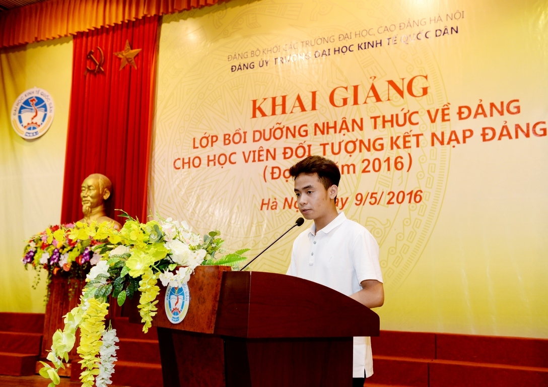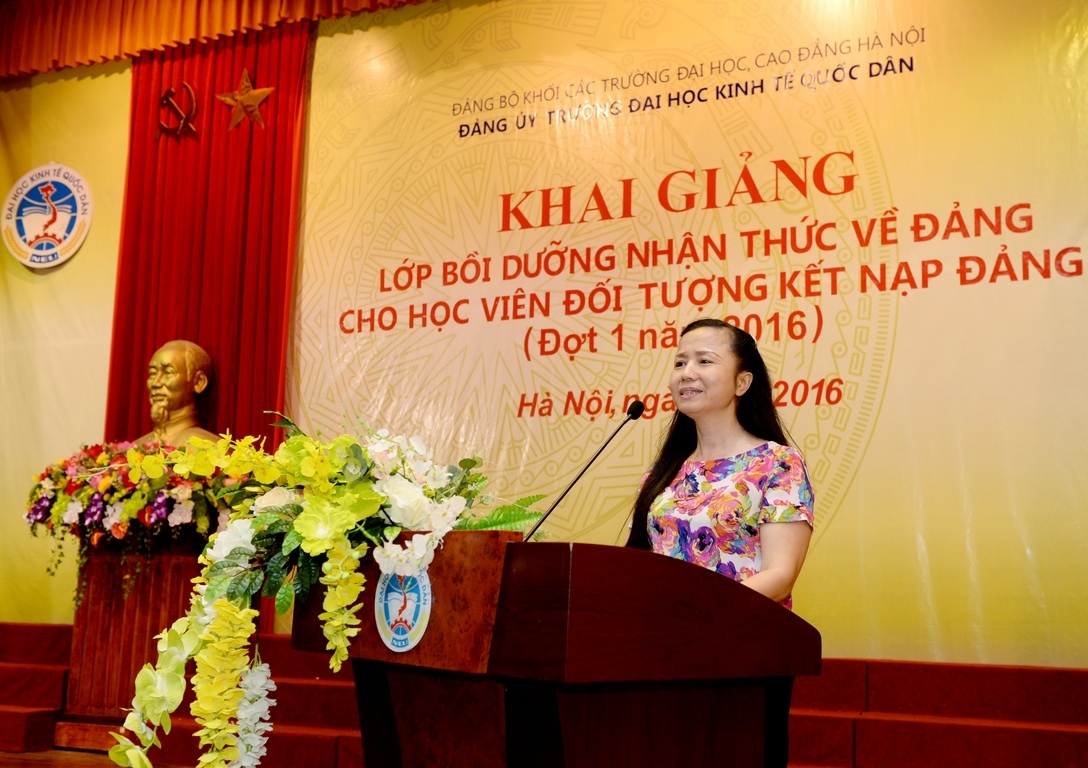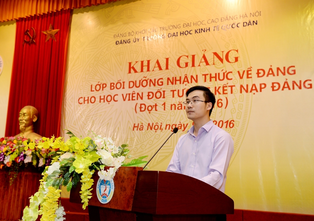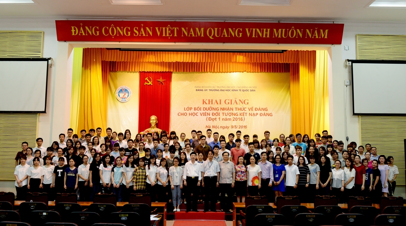 Thực hiện Nghị quyết Quý 2/2016 của Đảng uỷ Trường về tổ chức lớp Bồi dưỡng nhận thức về Đảng cho Học viên đối tượng kết nạp Đảng, tối ngày 09/05/2016, tại Nhà văn hoá Trường Đại học Kinh tế Quốc dân, Đảng uỷ Trường đã tổ chức khai giảng lớp Lý luận chính trị bồi dưỡng kiến thức về Đảng (đợt 1/2016) cho các học viên Đối tượng kết nạp Đảng.