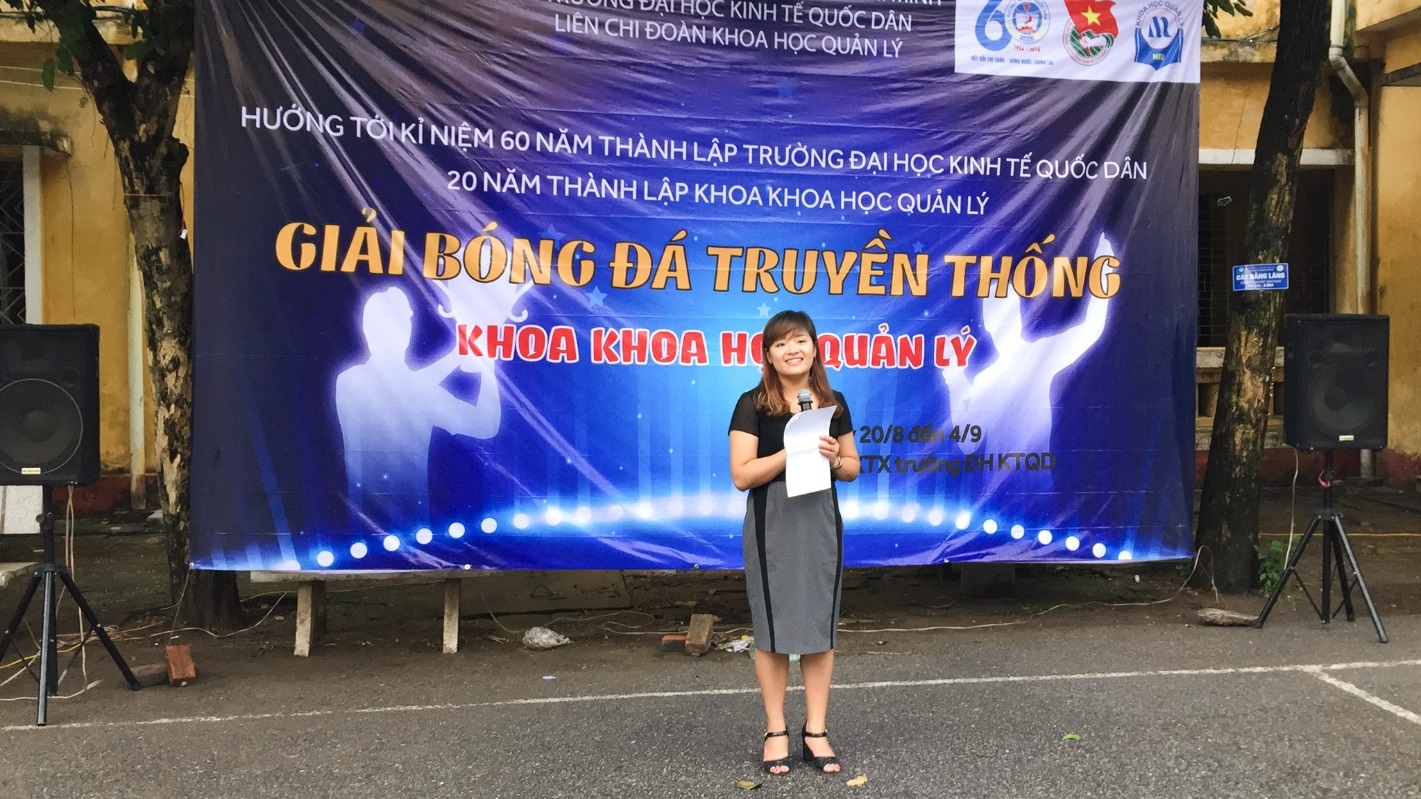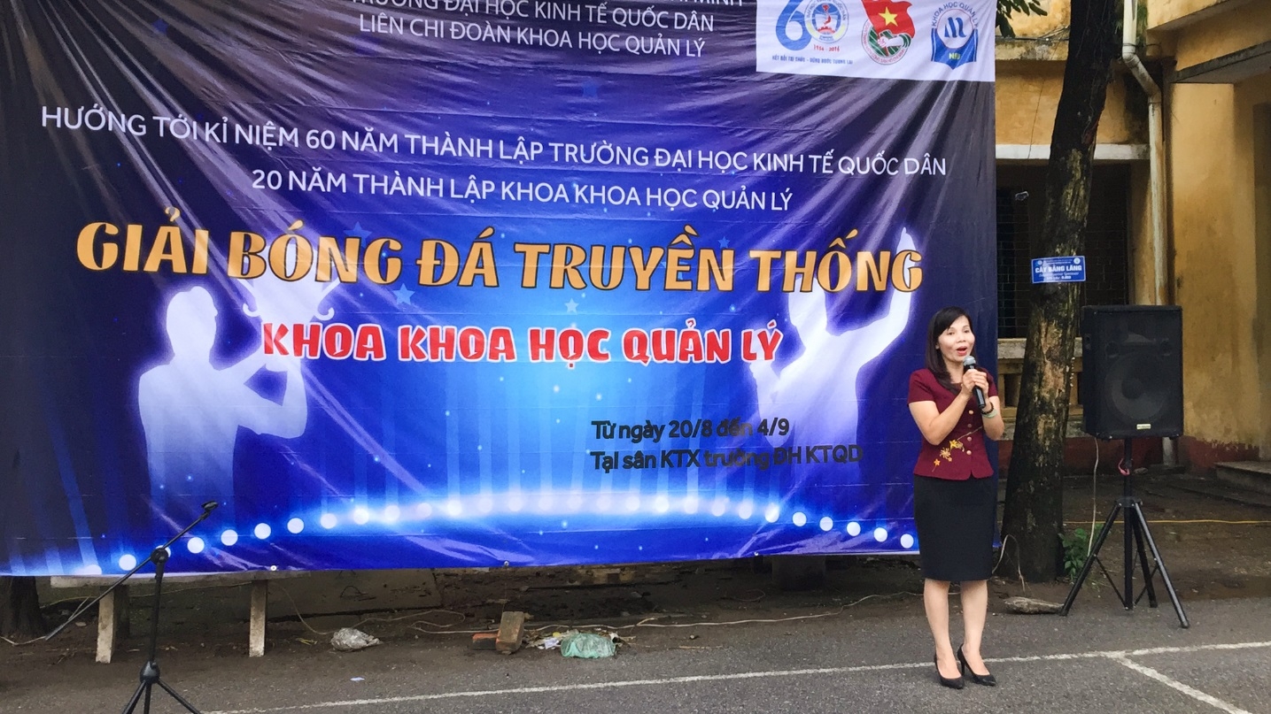 Hướng tới Lễ chào mừng kỷ niệm 60 năm trường Đại học Kinh tế Quốc dân, 20 năm thành lập Khoa Khoa học Quản lý, đồng thời động viên, khích lệ phong trào rèn luyện thể dục thể thao, tiếp bước truyền thống hoạt động thể dục thể thao của Khoa, BCH LCĐ Khoa Khoa học Quản lý đã tổ chức Giải bóng đá truyền thống Khoa Khoa học Quản lý năm 2016. Lễ khai mạc diễn ra sáng ngày 22/8/2016 tại sân bóng đá kí túc xá Trường Đại học Kinh tế Quốc dân. Đến tham dự chương trình khai mạc có PGS.TS.Trần Thị Vân Hoa – Phó Hiệu trưởng, PGS.TS Đỗ Thị Hải Hà – Trưởng Khoa Khoa học Quản lý, PGS.TS Mai Ngọc Anh – Phó trưởng Khoa Khoa học Quản lý, Cô Giang Khánh Vân – Trưởng Bộ môn GDTC, Ths. Nguyễn Thanh Hằng – Bí thư LCĐ Khoa học Quản lý, trưởng BTC mùa giải, các thầy cô đại diện ban trọng tài, các thầy cô giáo Khoa Khoa học Quản lý cùng sự hiện diện của toàn thể các vận động viên và đông đảo các cổ động viên. Giải bóng đá truyền thống Khoa Khoc học Quản lý là hoạt động thường niên nằm trong chương trình hoạt động của Khoa Khoa học Quản lý. Giải bóng đá truyền thống năm nay đặc biệt hơn vì có sự tham gia của các cựu sinh viên của Khoa. Đây là cơ hội để các thế hệ thầy trò gặp mặt và giao lưu, hướng tới chào mừng 20 năm xây dựng và phát triển của Khoa Khoa học Quản lý.  PGS.TS.Trần Thị Vân Hoa – Phó Hiệu trưởng phát biểu chào mừng Phát biểu tại chương trình khai mạc, PGS.TS.Trần Thị Vân Hoa – Phó Hiệu trưởng cho rằng giải bóng đá truyền thống Khoa Khoa học Quản lý là một trong những hoạt động thiết thực động viên tinh thần, rèn luyện sức khỏe cho các em sinh viên – các nhà Quản lý tương lai. PGS.TS.Trần Thị Vân Hoa chúc cho mạng lưới sinh viên, cựu sinh viên Khoa Khoa học Quản lý ngày càng vững mạnh và chúc giải đấu được diễn ra thành công tốt đẹp.  Ths. Nguyễn Thanh Hằng – Trưởng BTC phát biểu khai mạc Phát biểu khai mạc giải đấu, Ths.Nguyễn Thanh Hằng – Trưởng Ban tổ chức nhấn mạnh rằng giải bóng đá truyền thống Khoa Khoa học Quản lý năm 2016 là một giải đấu đặc biệt hướng đến các sự kiện trọng đại của Trường cũng như của Khoa. Giải đấu không chỉ là cơ hội để các sinh viên rèn luyện sức khỏe, nâng cao phong trào thể dục thể thao mà nó còn là dịp để các sinh viên của Khoa giao lưu, học hỏi, đoàn kết và gắn bó hơn nữa và mong rằng các đội bóng sẽ thi đấu hết mình vì màu cờ sắc áo, cống hiến các pha bóng đẹp để giải đấu thành công rực rỡ. Giải đấu năm nay có sự tham gia của 16 đội bóng được chia thành 2 bảng Nam và 1 bảng Nữ thi đấu vòng tròn một lượt lựa chọn các đội xuất sắc nhất vào thi đấu bán kết và chung kết của giải. Dự kiến Giải đấu sẽ bế mạc vào ngày 01 tháng 9 năm 2016. |