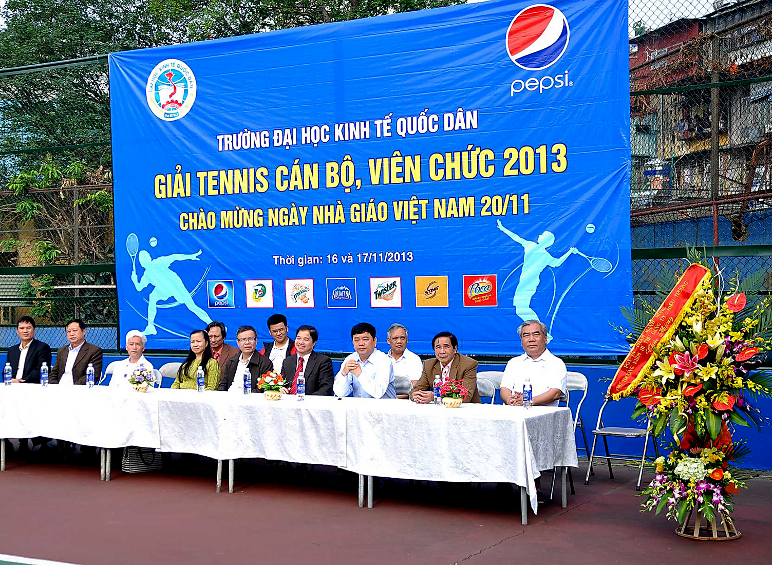 Tiến tới chào mừng ngày Nhà giáo Việt Nam 20.11, sáng nay 16/11/2013 tại Sân thể thao Tennis của trường, Công đoàn Trường đại học KTQD đã tổ chức khai mạc Giải Tennis truyền thống của cán bộ, giáo viên. Đến dự buổi lễ có các đồng chí PHT: GS.TS Phan Công Nghĩa, GS.TS Phạm Quang Trung, GS.TS Trần Thọ Đạt; PGS.TS Nguyễn Viết Lâm, PBT thường trực Đảng ủy; PGS.TS Đào thị Phương Liên- Chủ tịch Công đoàn trường; Ths Nguyễn Hoàng Hà- Bí thư ĐTN trường; GS.TS Trần Minh Đạo- Chủ tịch CLB Tennis trường; GS.TSKH Lê Du Phong, Nguyên Q. Hiệu trưởng, Chủ tịch Cựu giáo chức của trường; Tham dự cón có đông đảo các đồng chí lãnh đạo các đơn vị Phòng ban, các tổ chức chính trị xã hội của trường,đông đảo cổ động viên cùng trên 30 vận động viên Tennis có mặt tham gia thi đấu giải. Đặc biệt, do bận công việc của Bộ, nhưng PGS.TS Phạm Mạnh Hùng- Thứ trưởng Bộ Giáo dục và Đào tạo kiêm Bí thư, Hiệu trưởng vẫn rất quan tâm đến hoạt động văn thể của Trường, đã gửi lẵng hoa đến chúc mừng và động viên các vận động viên tham gia thi đấu.