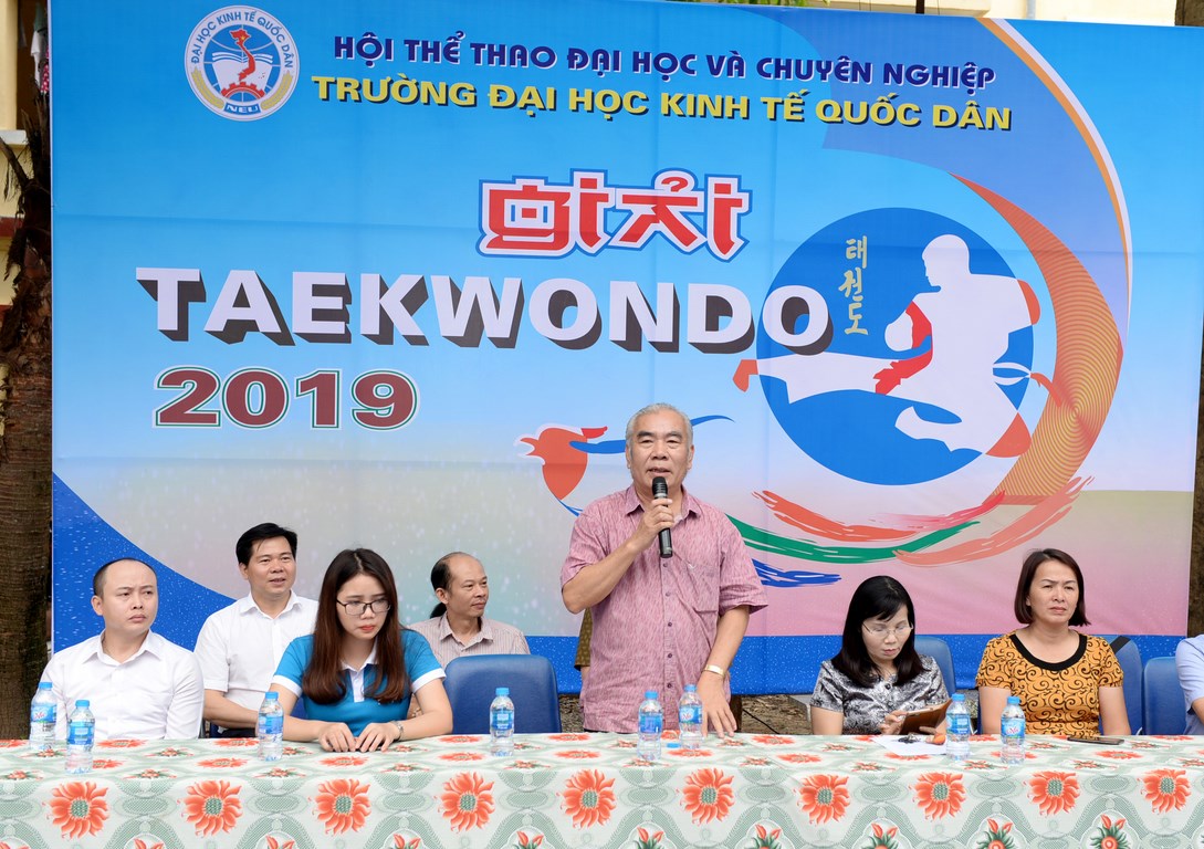 Phát biểu khai mạc giải võ, GS.TS Phan Công Nghĩa – Chủ tịch Hội Thể thao Đại học Kinh tế Quốc dân cho biết: Giải võ Taekwondo truyền thống Đại học Kinh tế Quốc dân lần thứ nhất năm 2019 là sân chơi hết sức bổ ích. Taekwondo trong những năm gần đây đã phát triển rộng khắp thu hút đông đảo các bạn sinh viên đến với các câu lạc bộ võ thuật của Trường Đại học Kinh tế Quốc dân, qua đó tạo động lực để tiếp tục đẩy mạnh phong trào sinh viên rèn luyện thể dục thể thao trong Nhà trường. GS.TS Phan Công Nghĩa hi vọng giải Taekwondo lần này sẽ là sân chơi cho bạn sinh viên và cũng là cơ hội để Nhà trường tìm kiếm, phát hiện và tuyển chọn những VĐV tài năng để bổ sung đội tuyển Taekwondo của Nhà trường tham dự các giải đấu trong thời gian tới.
