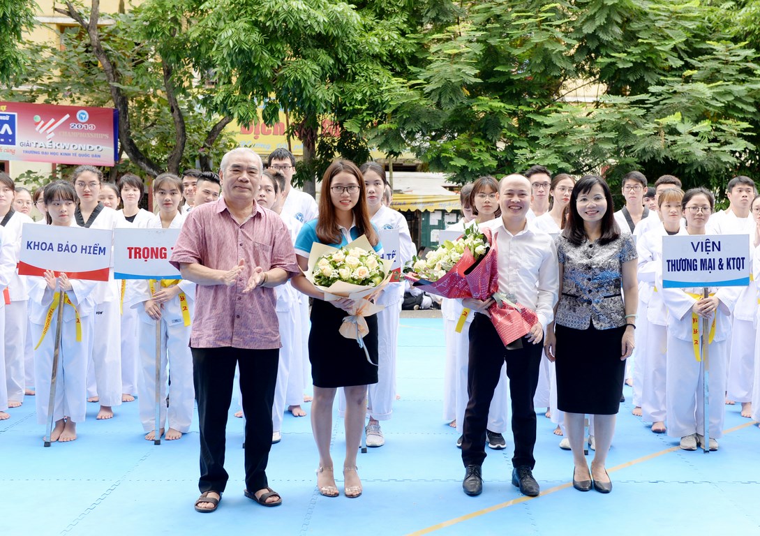 Tham dự khai mạc có PGS.TS Trần Thị Vân Hoa – Phó Hiệu trưởng nhà trường; GS.TS Phan Công Nghĩa – Chủ tịch Hội Thể thao Đại học Kinh tế Quốc dân; ThS Giang Thị Khánh Vân – Trưởng bộ môn Giáo dục thể chất; TS Nguyễn Xuân Hưng – Chánh văn phòng Viện Thương mại và Kinh tế Quốc tế; cùng đông đảo các bạn sinh viên tham dự và cổ vũ giải võ.