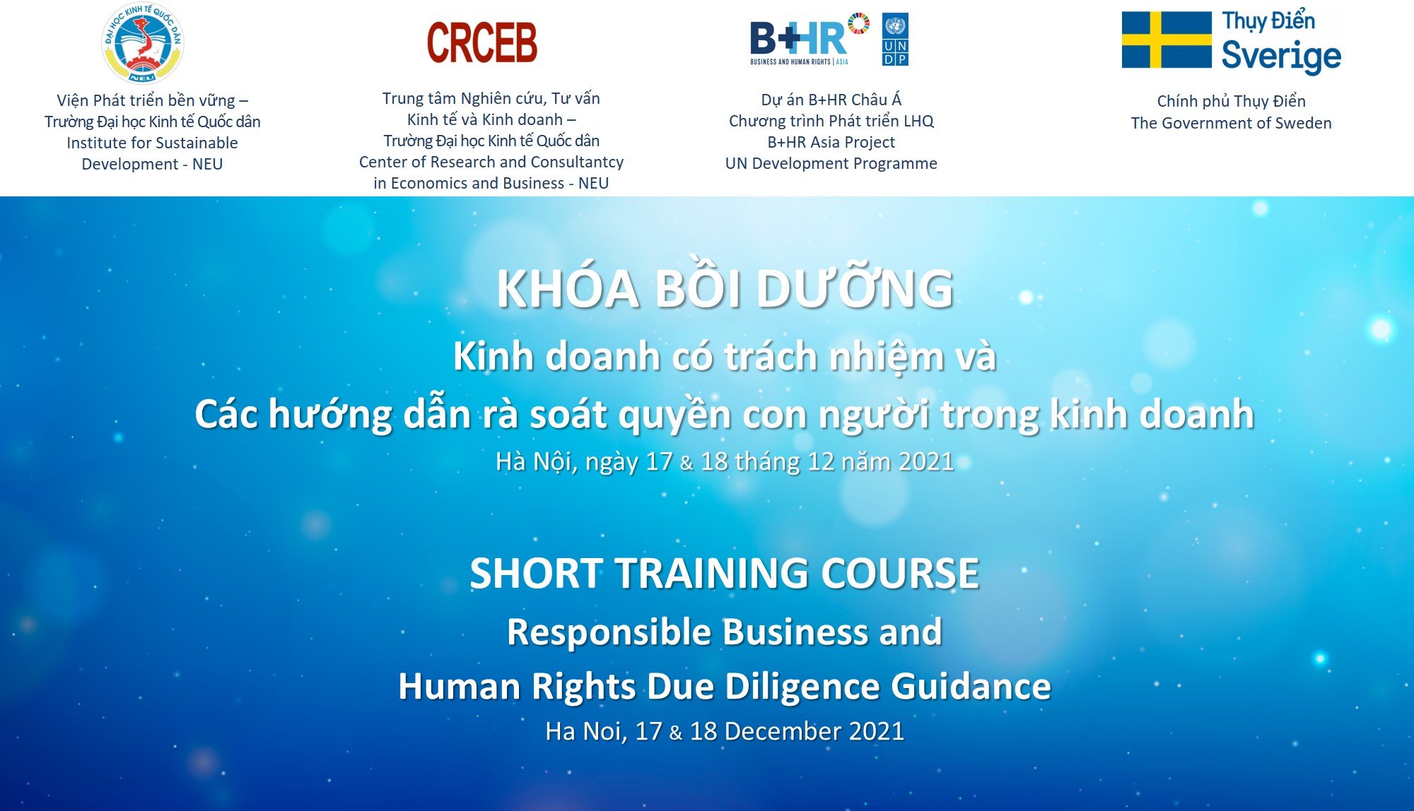 Khóa Bồi dưỡng “Kinh doanh có trách nhiệm và các hướng dẫn rà soát quyền con người trong kinh doanh” là sự kiện nằm trong khuôn khổ của dự án Đào tạo về quyền con người trong kinh doanh do Chương trình phát triển Liên Hợp Quốc (UNDP) phối hợp với trường Đại học Kinh tế Quốc dân và Đại sứ quán Thụy Điển triển khai thực hiện.