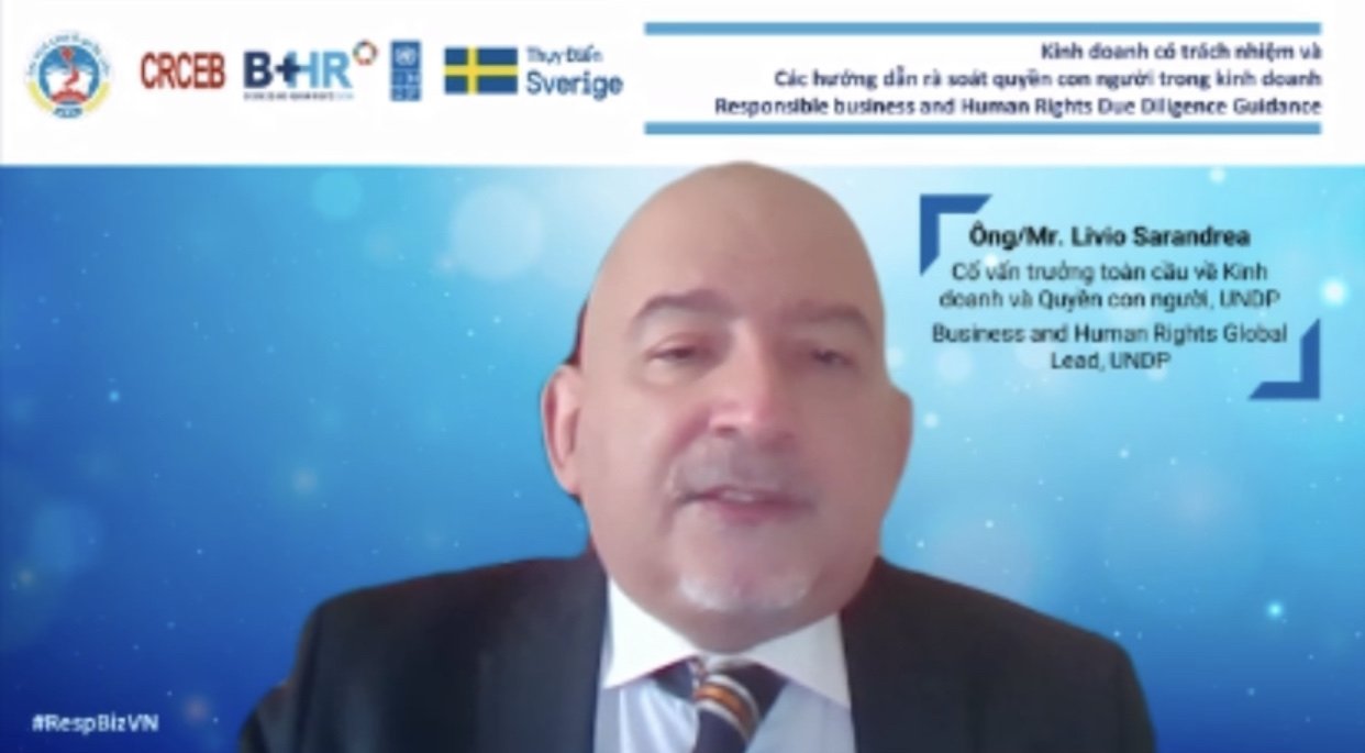 Ông Livio Sarandrea – Cố vấn trưởng toàn cầu về Kinh doanh và Quyền con người của Chương trình phát triển Liên Hợp Quốc (UNDP)