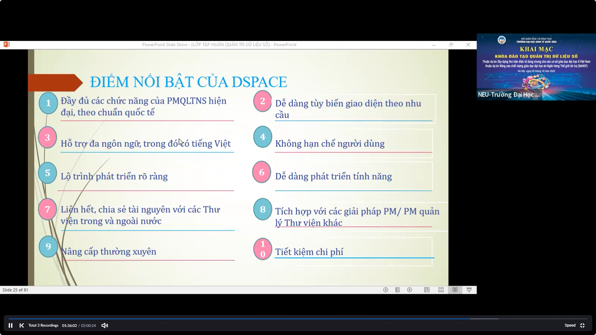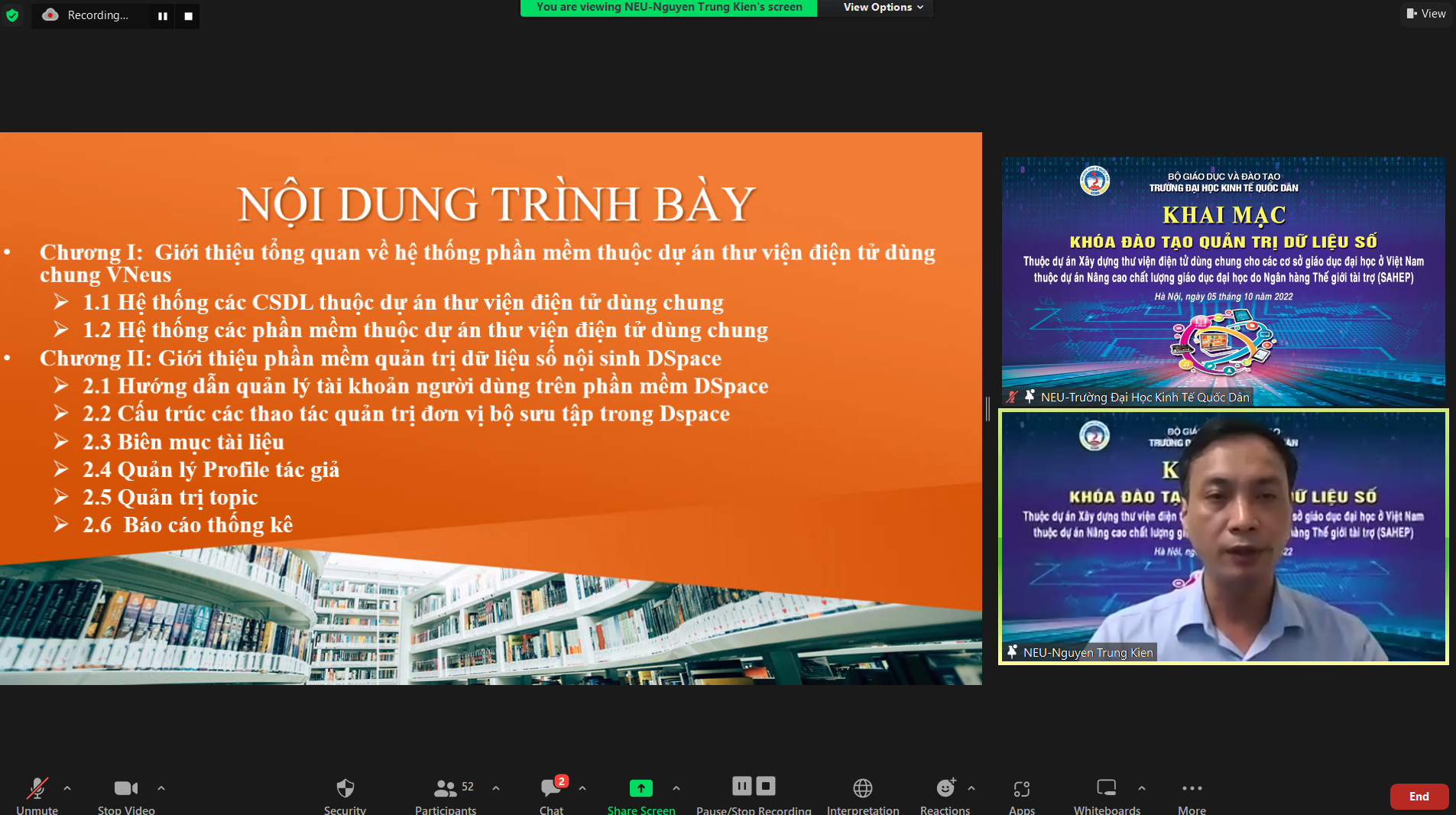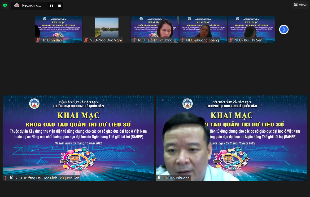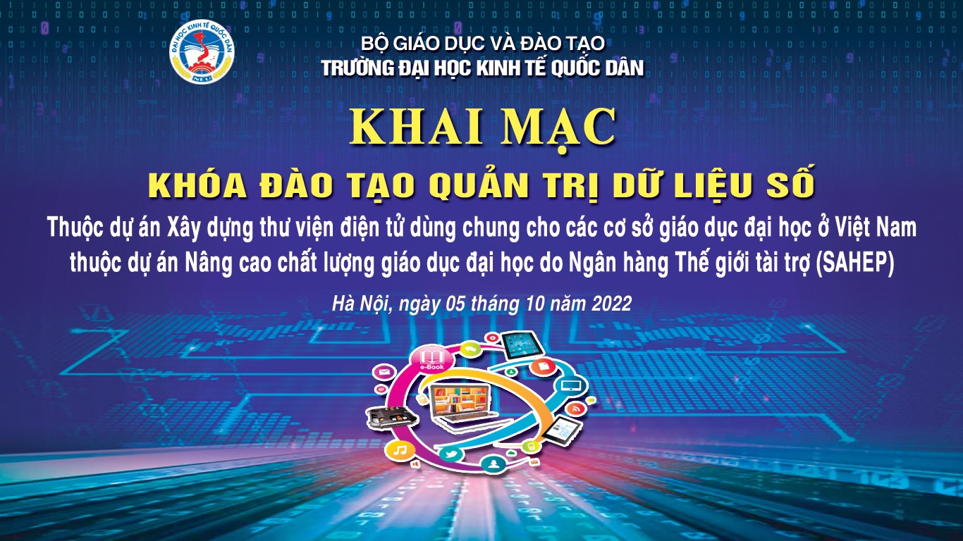 Ngày 05/10/2022, Trường Đại học Kinh tế Quốc dân đã Khai mạc khóa đào tạo Quản trị dữ liệu số thuộc dự án Xây dựng thư viện điện tử dùng chung cho các cơ sở giáo dục đại học ở Việt Nam thuộc dự án Nâng cao chất lượng giáo dục đại học do Ngân hàng Thế giới tài trợ (SAHEP) dưới hình thức trực tuyến.