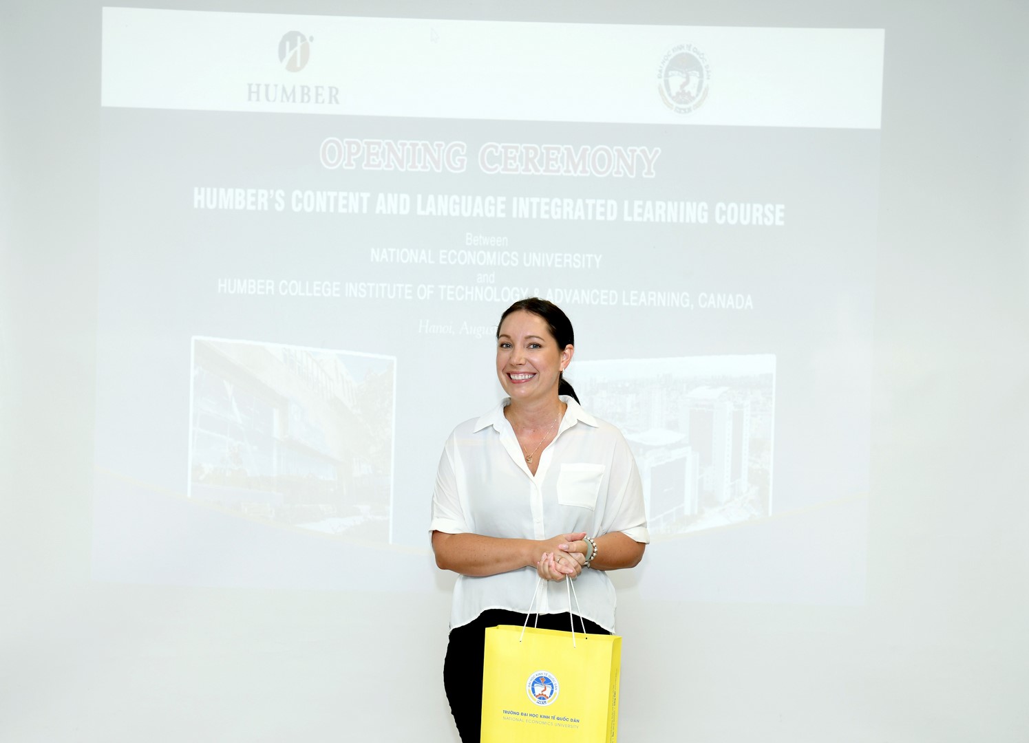 Tham dự khai mạc, về phía Học viện Công nghệ và Đào tạo chất lượng cao Humber, Canada có bà Kennedy Alessandra Bradbury – Giảng viên khóa học. Về phía Trường Đại học Kinh tế Quốc dân có PGS.TS Bùi Huy Nhượng – Phó Hiệu trưởng; PGS.TS Hồ Đình Bảo – Trưởng phòng Tổ chức cán bộ; TS. Đào Thanh Tùng – Trưởng phòng Hợp tác quốc tế; cùng 30 cán bộ, giảng viên tham gia khóa học.