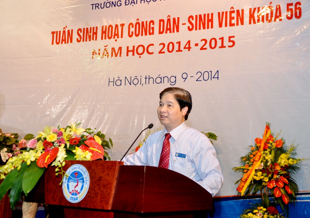 Thực hiện triển khai công văn số 4015 /BGDĐT – CTHSSV ngày 31/07/2014 của Bộ giáo dục và đào tạo về việc tổ chức “Tuần sinh hoạt công dân – HSSV” trong các trường ĐH, CĐ, TCCN năm học 2014 – 2015; Căn cứ vào công văn số 39- HD/ĐUK, ngày 30/6/2014 về hướng dẫn học tập, sinh hoạt chính trị đầu năm học 2014 – 2015 cho học sinh, sinh viên khối các trường Đại học, Cao đẳng Hà Nội, Ngày 15/9/2014, Nhà trường tổ chức “Tuần sinh hoạt công dân” cho sinh viên chính quy Khóa 56. Đến tham dự có GS.TS Phạm Quang Trung, Phó Hiệu trưởng; ThS. Bùi Trung Hải, Bí thư Đoàn thanh niên; ThS. Bùi Đức Dũng, Q.Trưởng PhòngTH; ThS. Nguyễn Hoàng Hà, Trưởng P.CTCT&QLSV cùng đại diện lãnh đạo các Khoa, Viện, Thầy cô trợ lý, cố vấn học tập của các lớp tham dự.
