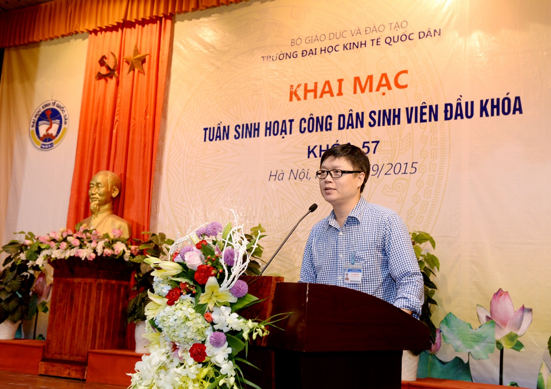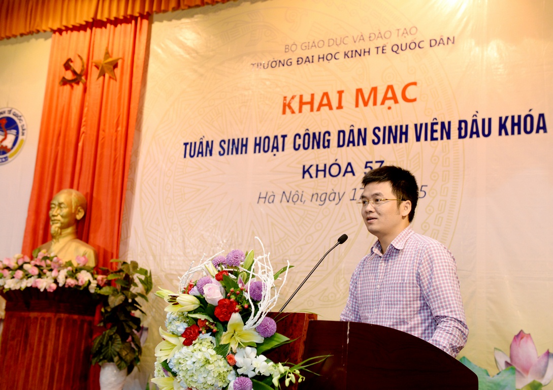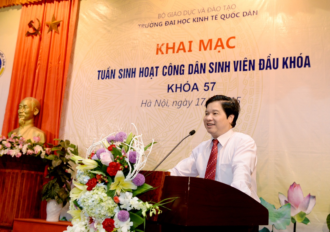 Thay mặt Đảng ủy, Ban Giám hiệu nhà trường, GS.TS Phạm Quang Trung – Phó Hiệu trưởng đã phát biểu, một lần nữa chúc mừng các tân sinh viên Khóa 57 đã chính thức trở thành những thành viên của ngôi nhà chung ĐHKTQD. Giáo sư Phó Hiệu trưởng cho rằng, "tuần sinh hoạt công dân” có vai trò quan trọng, giúp cho các em sinh viên có định hướng, thông tin ban đầu chính xác về các hoạt động của Nhà trường, về môi trường học tập, rèn luyện, phấn đấu trong cuộc đời sinh viên; chia sẻ cùng các tân sinh viên những kinh nghiệm thực tế, những lời khuyên bổ ích để hòa nhập với cuộc sống mới của một tân sinh viên, những kinh nghiệm học tập, những ứng xử trong cuộc sống v.v… mà một sinh viên cần phải học hỏi, tích lũy để đạt được kết quả học tập, rèn luyện cao nhất, có như vậy mới vững bước thành công sau khi ra trường.